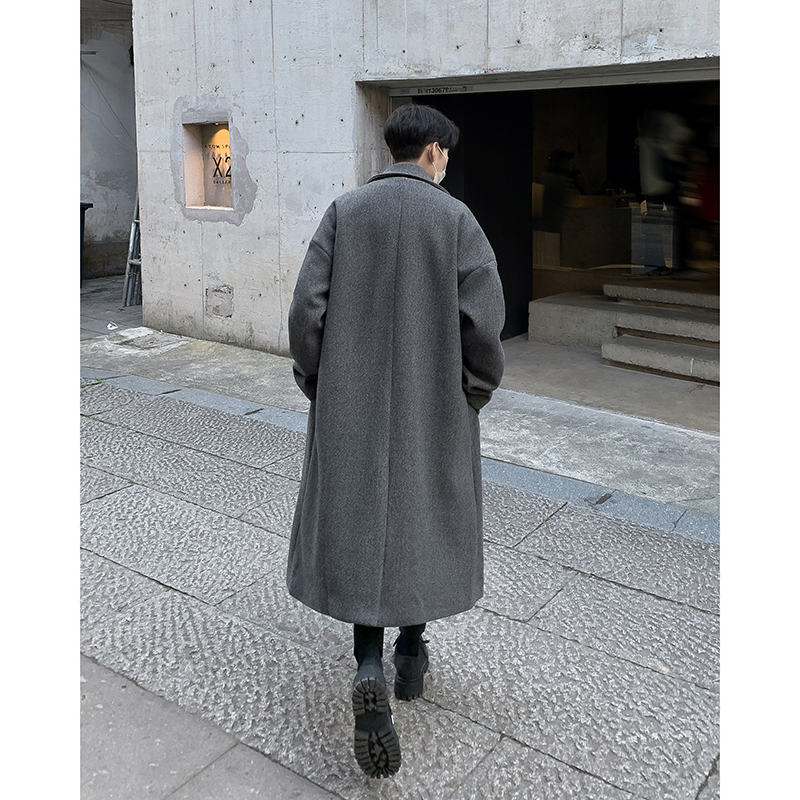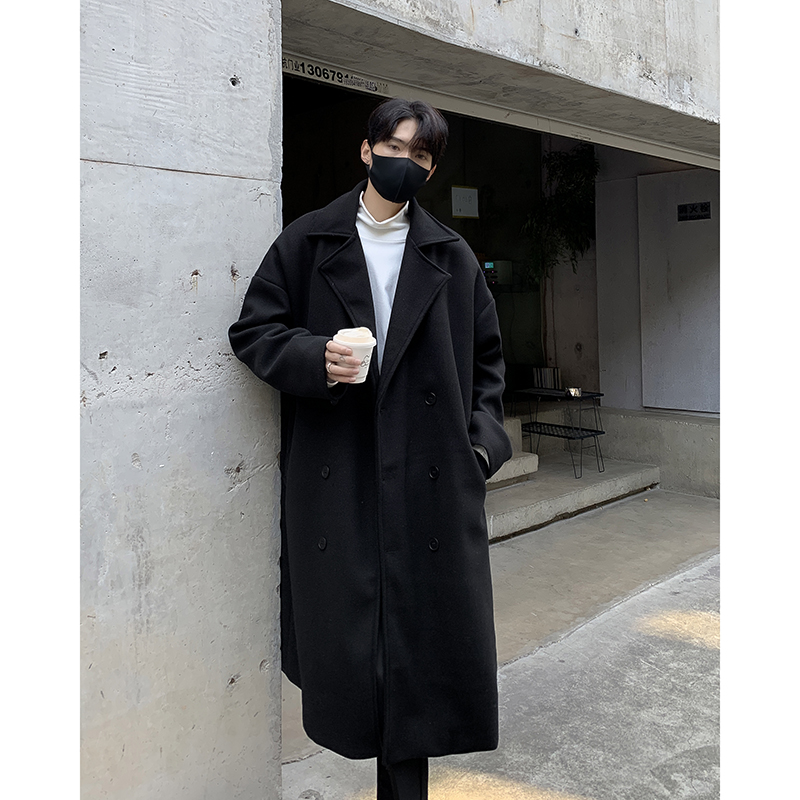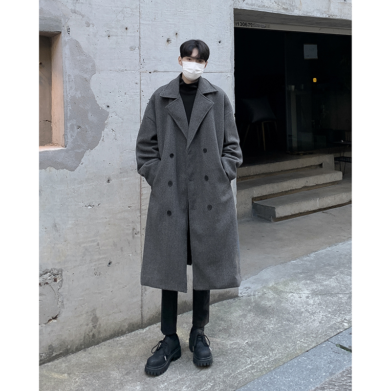 冬季中长款毛呢大衣男过膝加厚潮流西装领双排扣呢子风衣外套