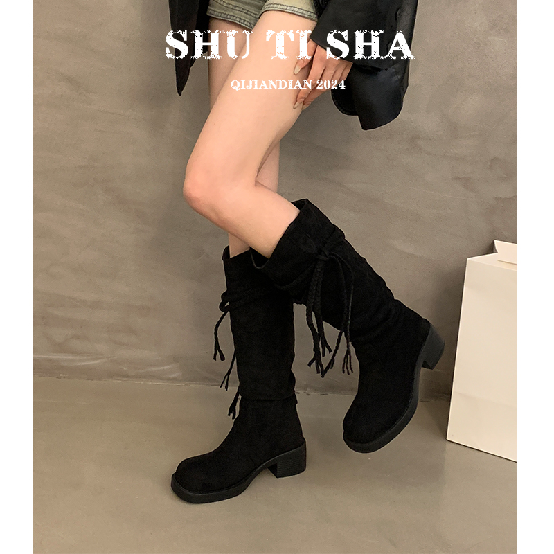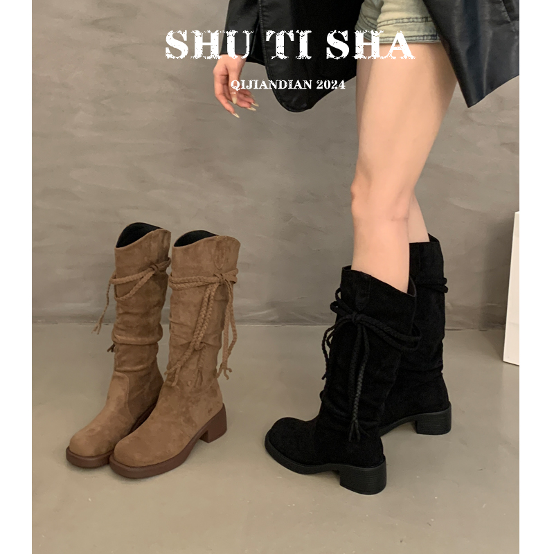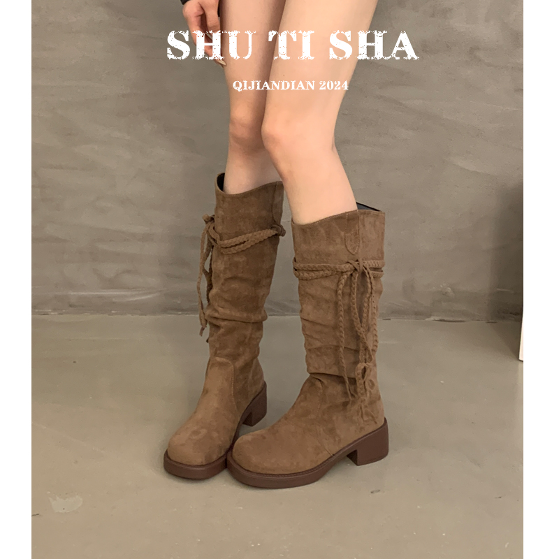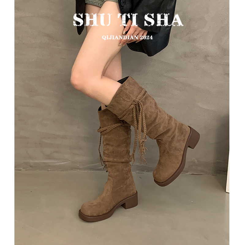 高筒骑士靴女新款秋冬复古英伦显瘦长靴粗跟西部靴