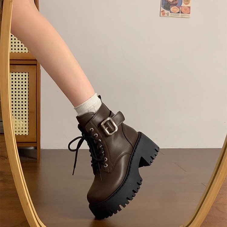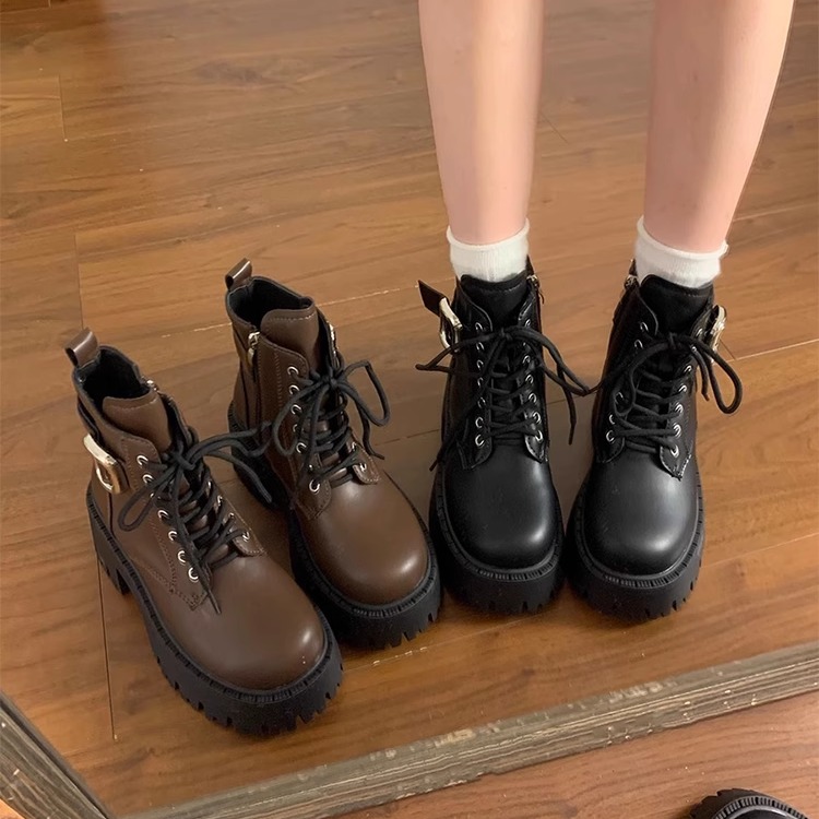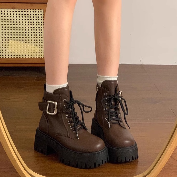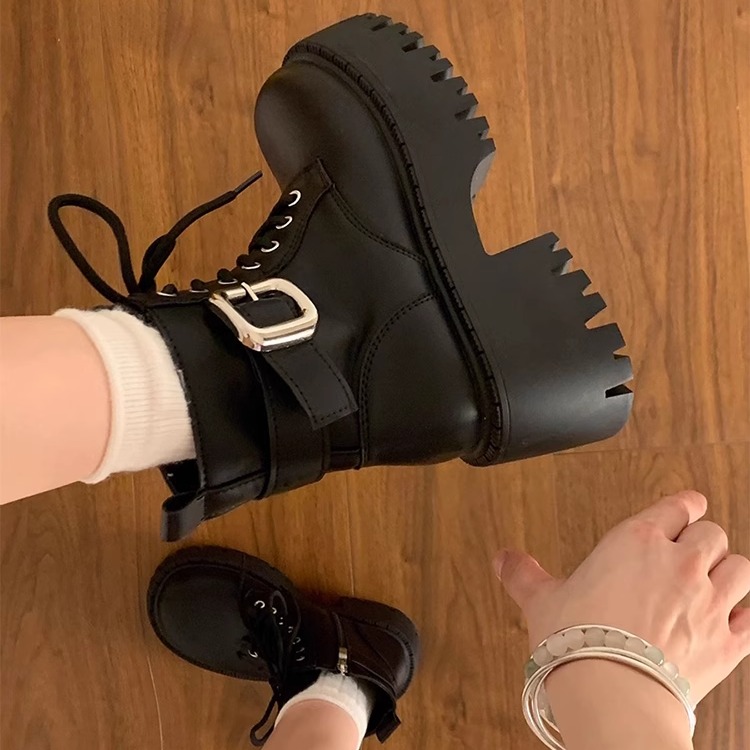 厚底英伦风马丁靴女款2025新款春秋增高黑色短靴子女