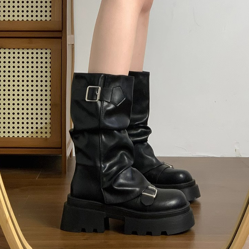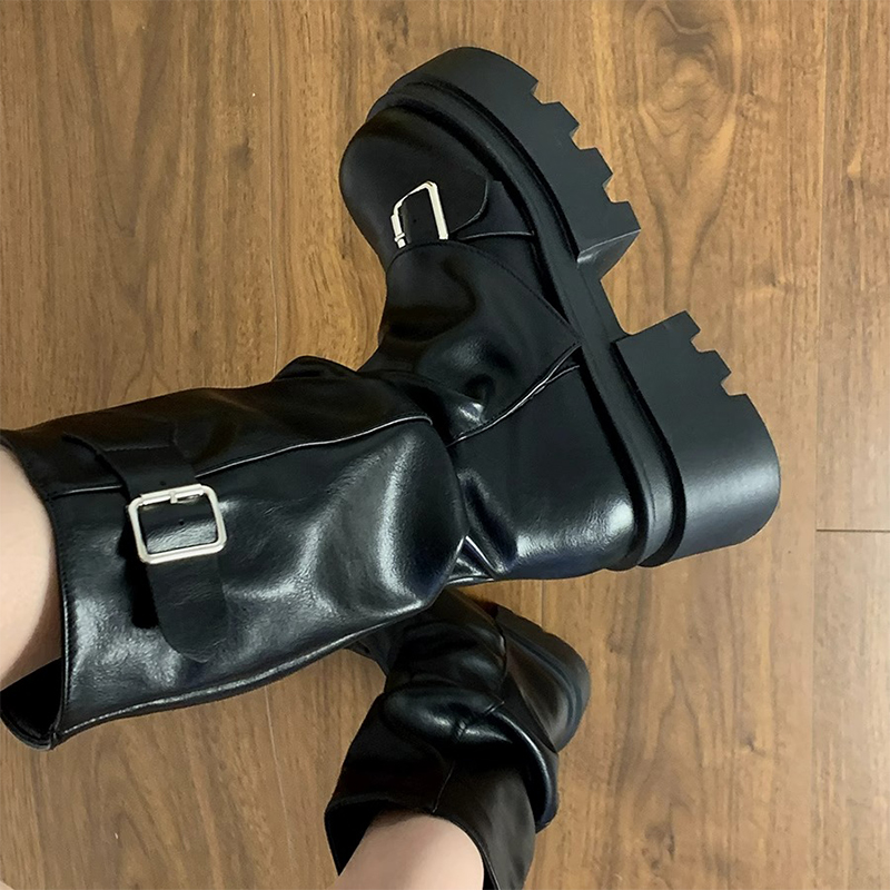 棕色百搭厚底增高马丁靴女年新款春秋冬季复古美中筒靴子防水