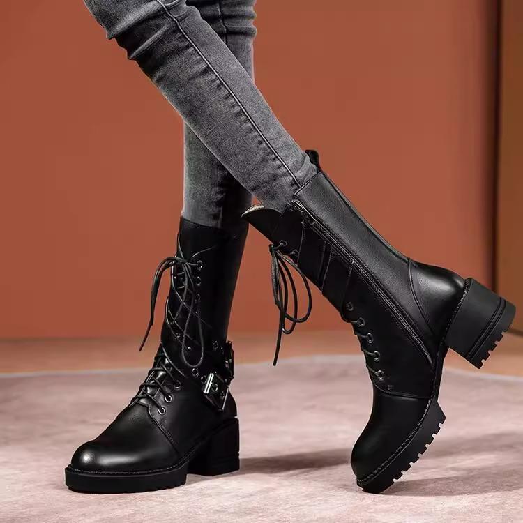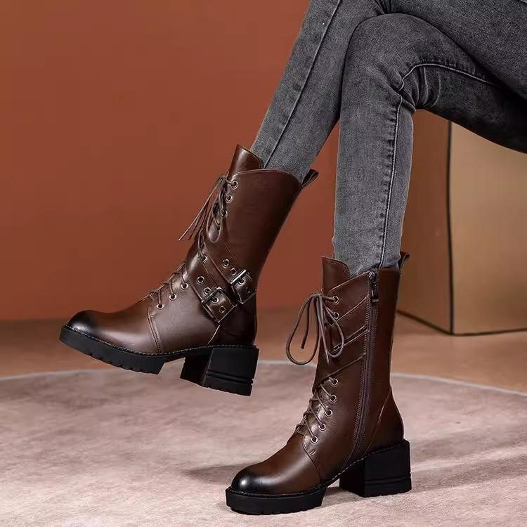 真皮马丁靴女冬季新款英伦中筒靴粗跟骑士靴厚底春秋单靴加绒短靴