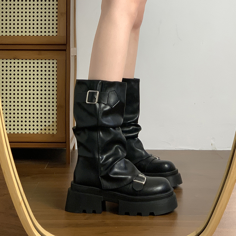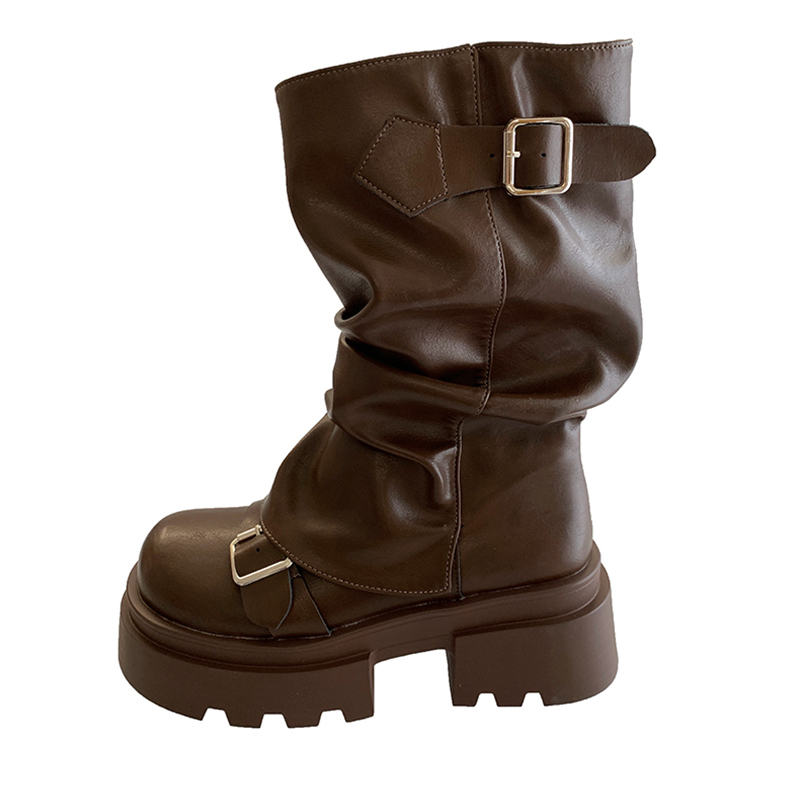 厚底增高马丁靴女2025新款春秋季复古棕色美拉德堆堆靴中筒裤管靴
