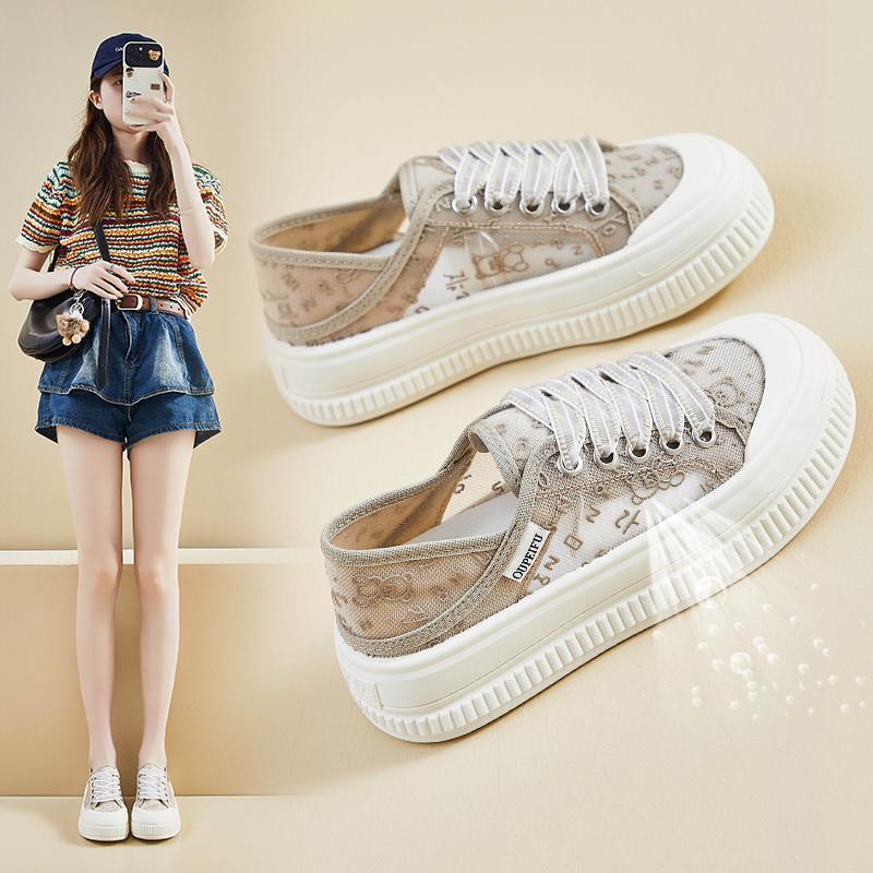 小香风渔夫鞋女34码透气网面小白板鞋夏季2025新款两穿运动休闲鞋