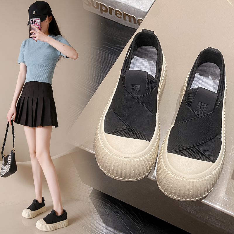 2025春夏季新款网面透气渔夫鞋女百搭厚底帆布鞋