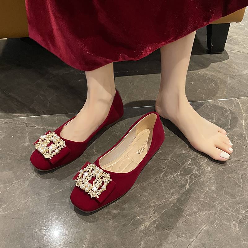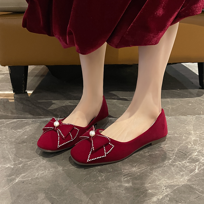 红色婚鞋女平底鞋2025年新款方头软底孕妇可穿秀禾婚纱两穿新娘鞋