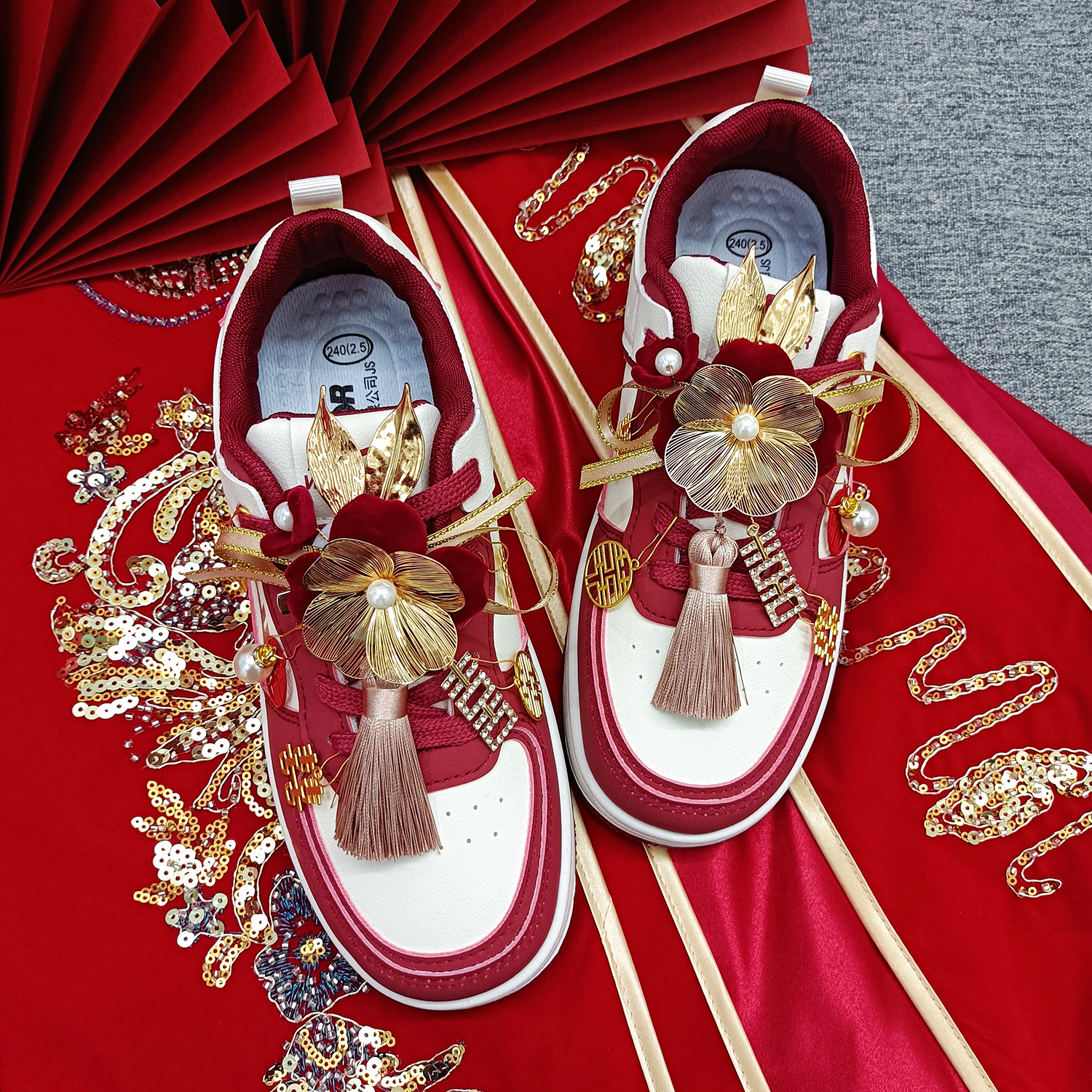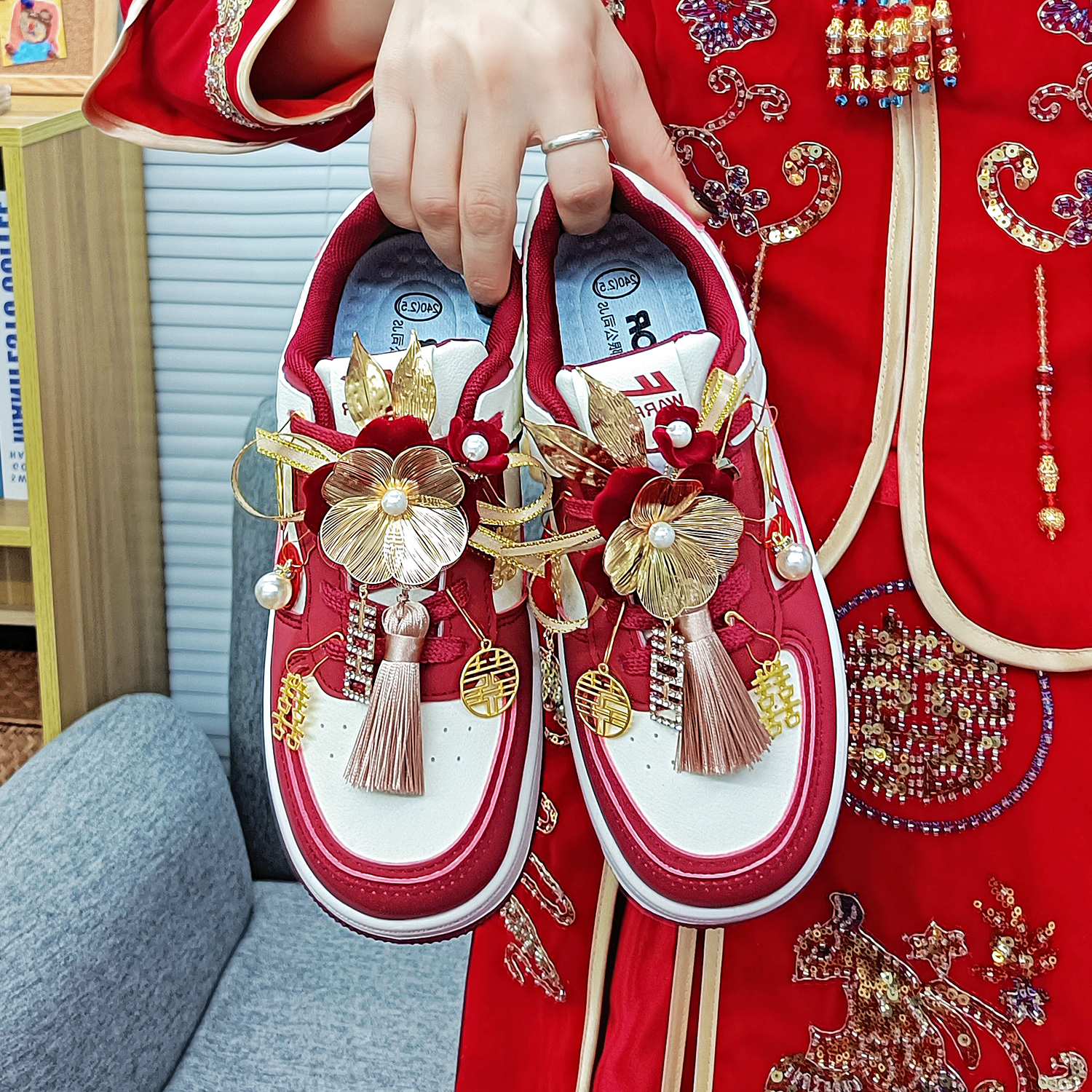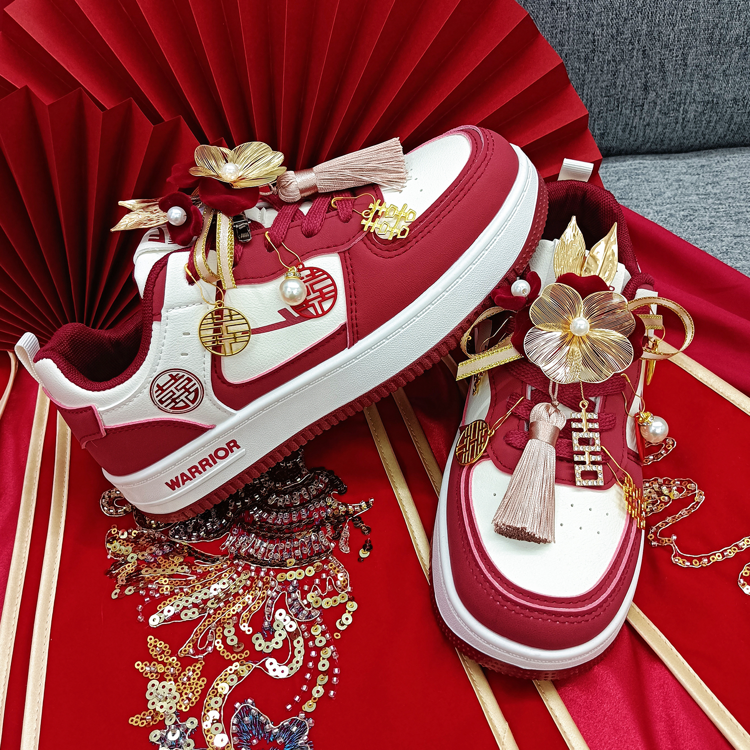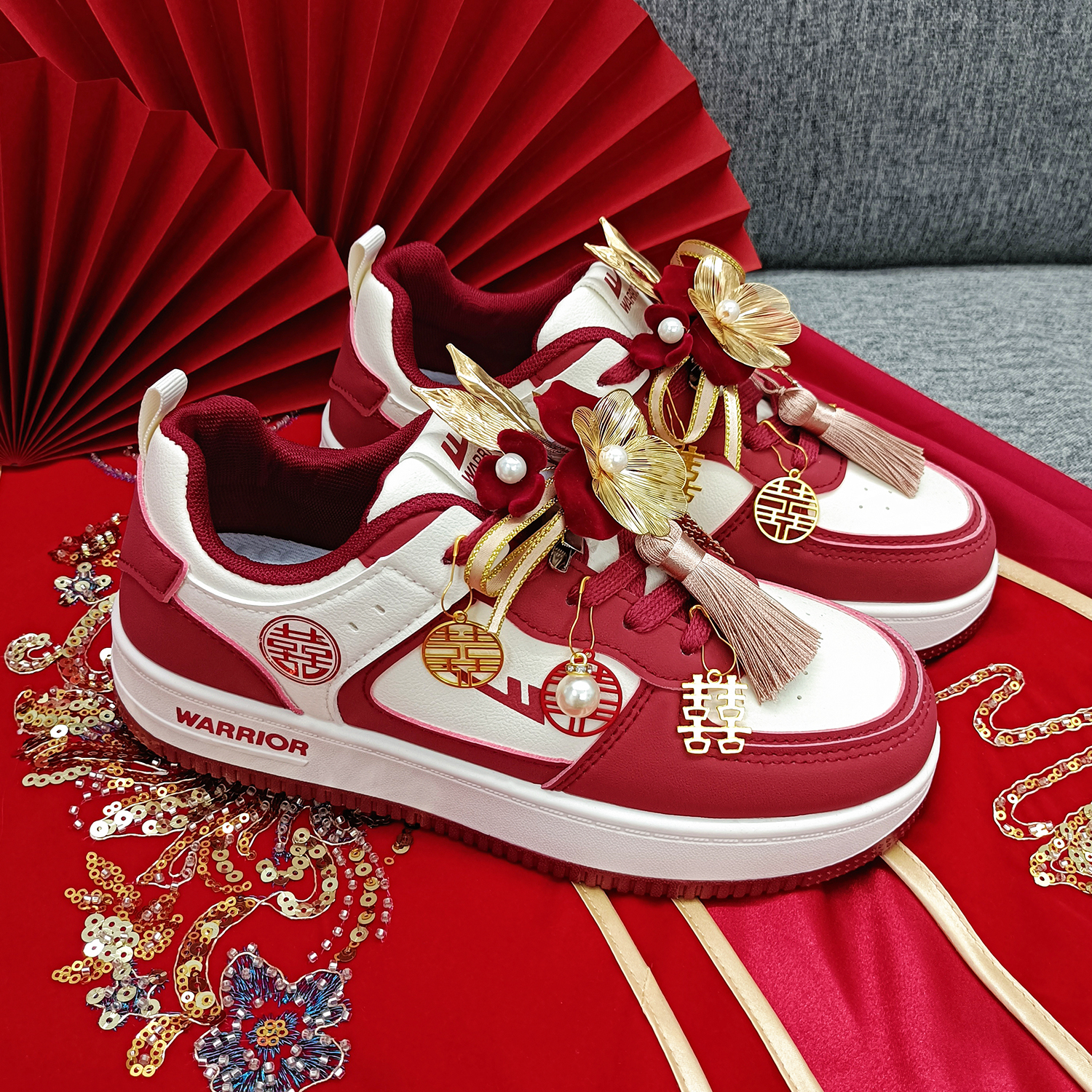回力新郎新娘订婚结婚鞋红色2025年春季新款秀禾婚纱两穿情侣板鞋