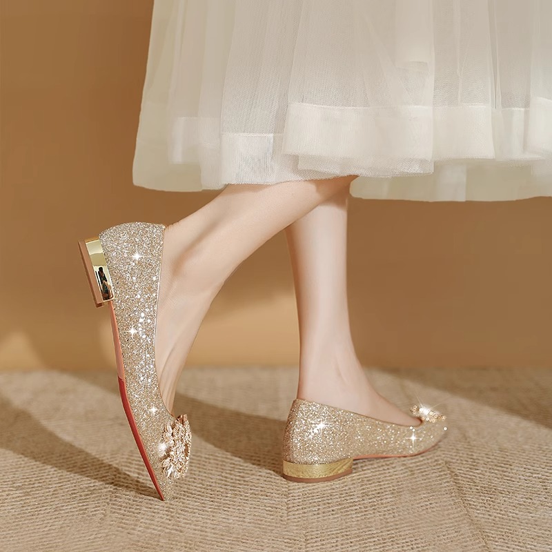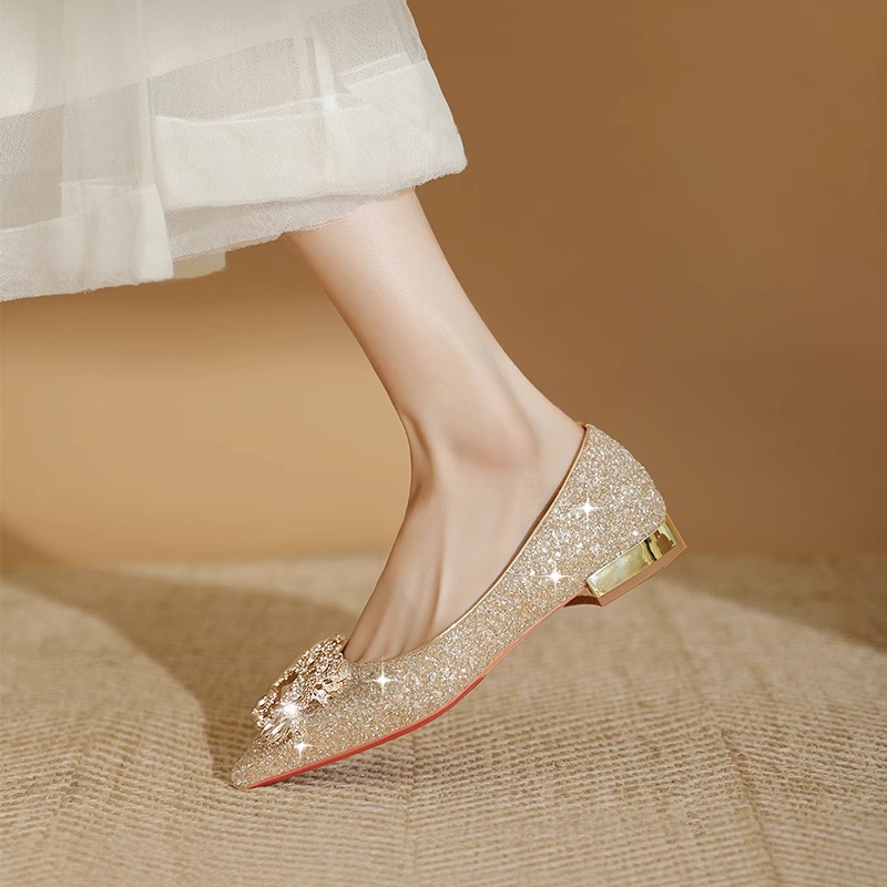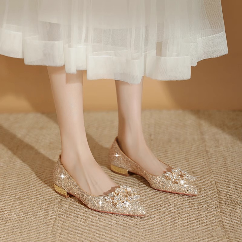 平底婚鞋女2025新款孕妇结婚鞋女新娘鞋水晶鞋伴娘鞋低跟日常可穿