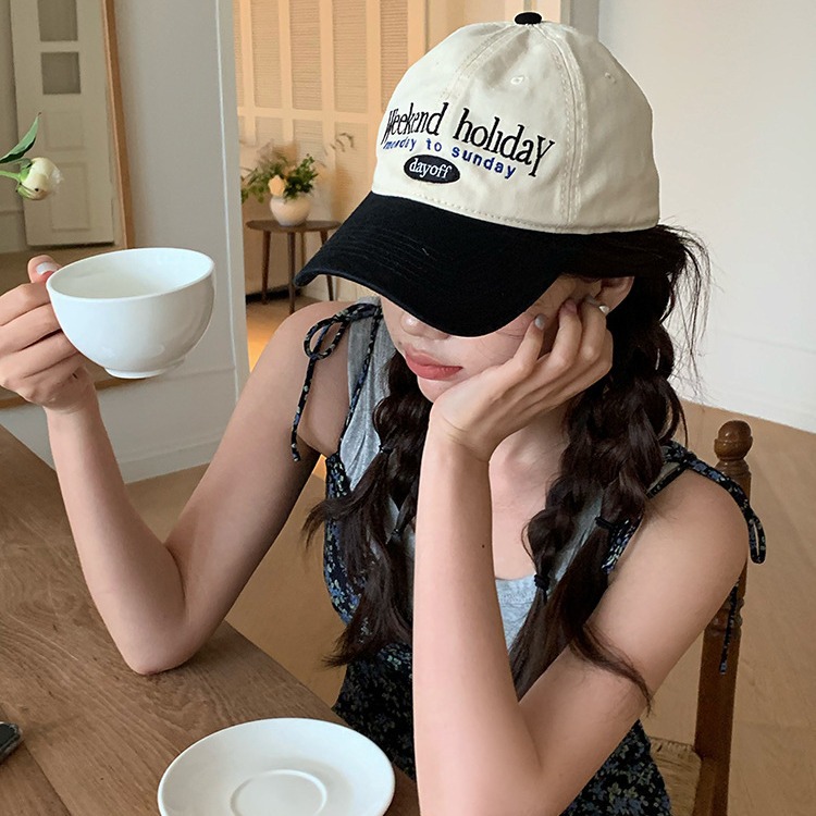 韩国ins棒球帽刺绣字母黑白拼接撞色显脸小遮阳防晒鸭舌帽子女潮