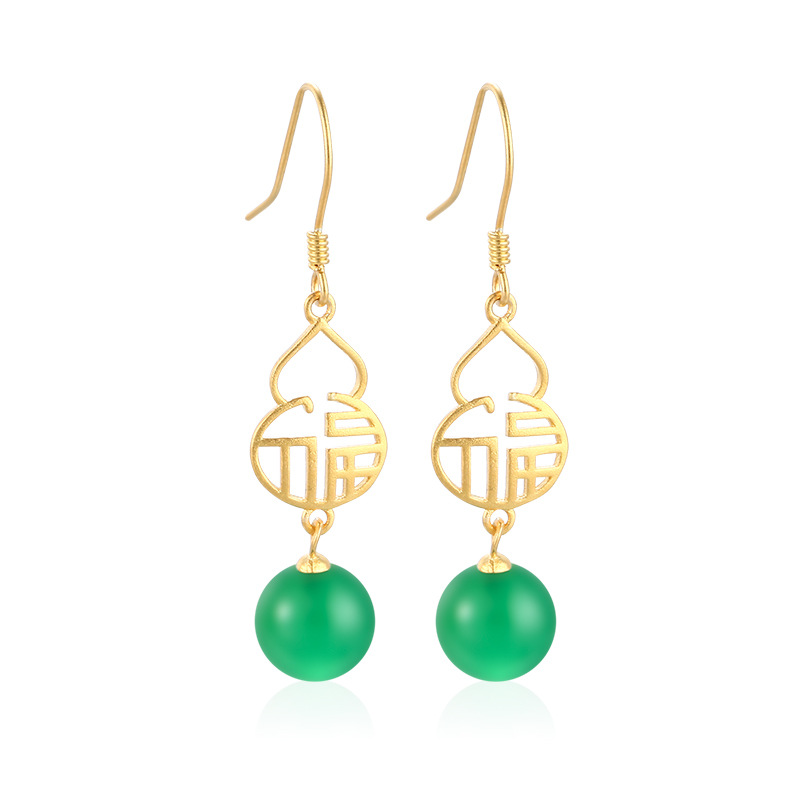 葫芦福字设计感玉石耳钩天然和田耳饰S925纯银开运耳坠玉髓耳环