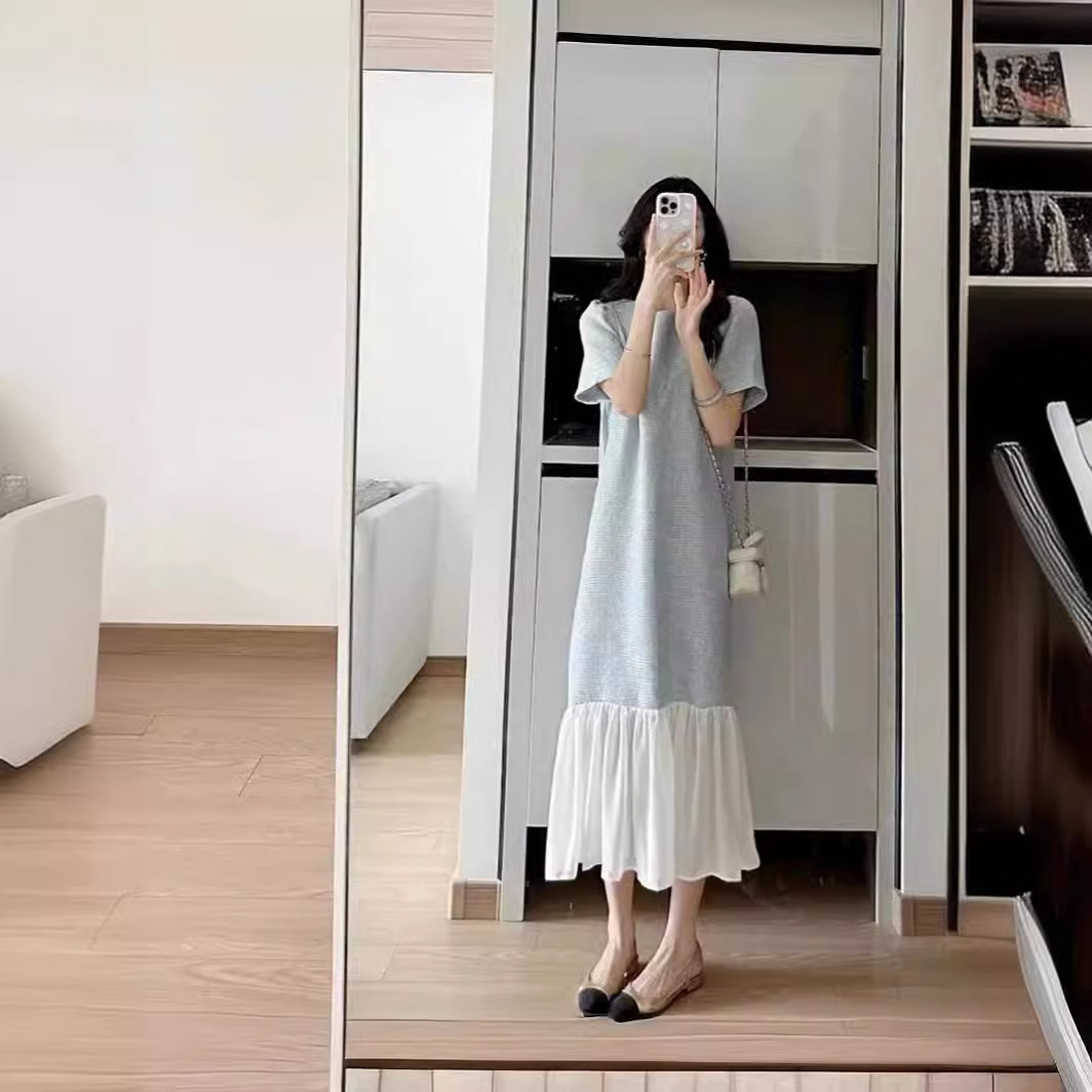 茶歇法式连衣裙女夏新款小香风蓝色度假风气质高端精致鱼尾裙长裙