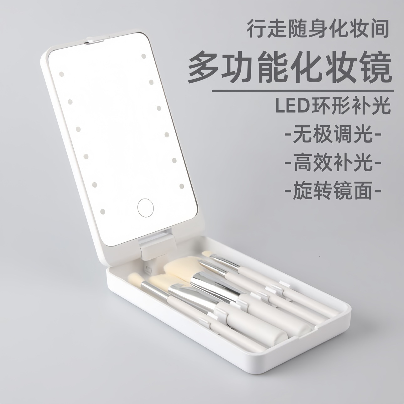跨境led化妆镜带灯小镜子便携迷你随身镜梳妆镜台式桌面折叠镜