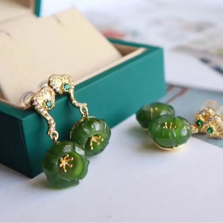 经典天然碧玉耳坠女纯银百搭短款绿色耳环花朵款超仙原创设计首饰
