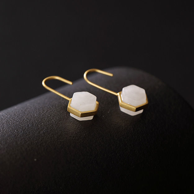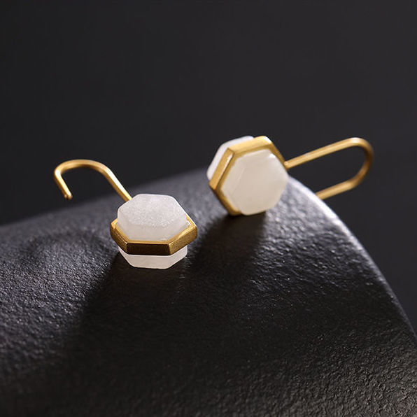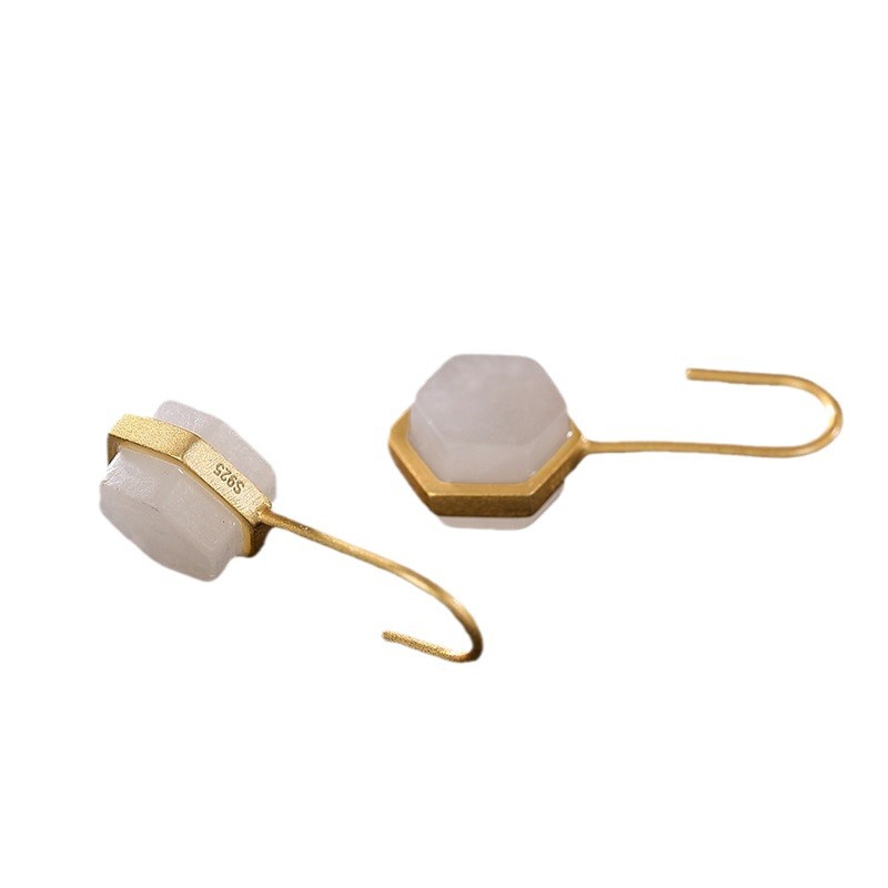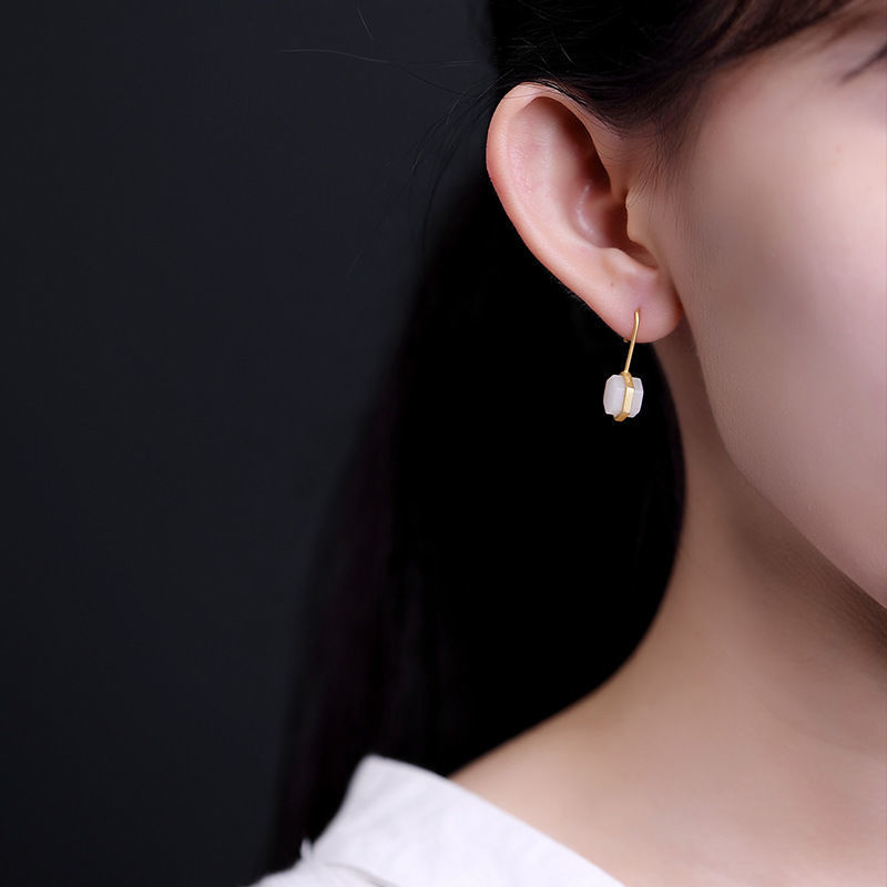 天然和田白耳坠饰女天然几何中式复古国风耳环女饰品