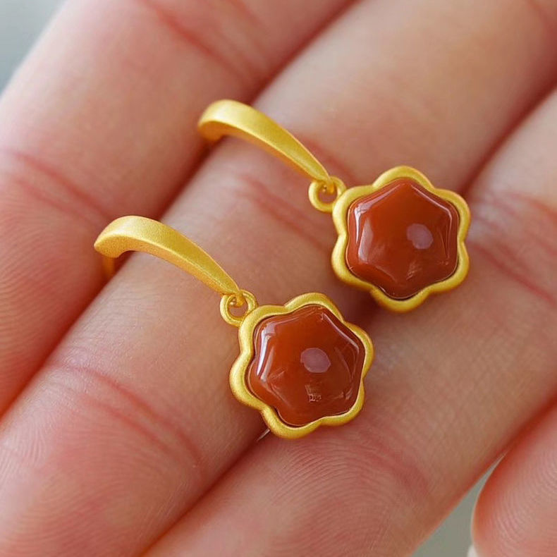 六角梅花南红耳坠