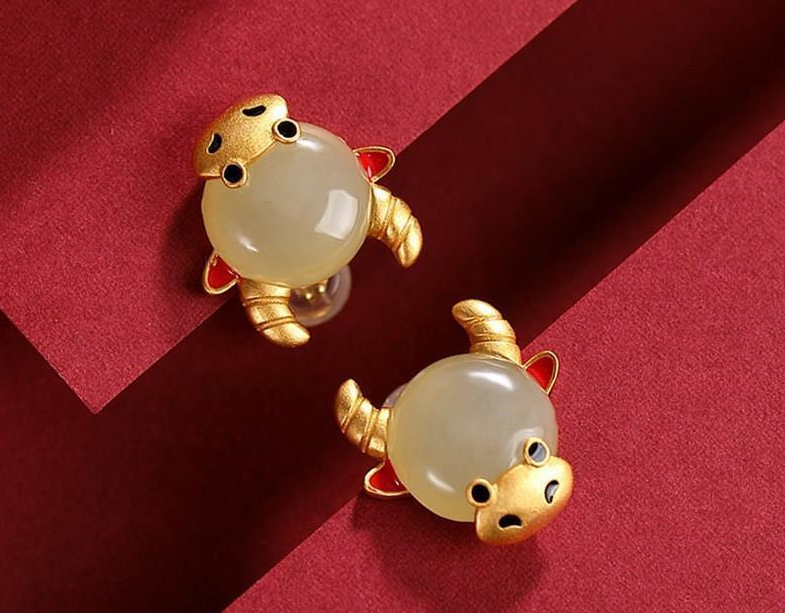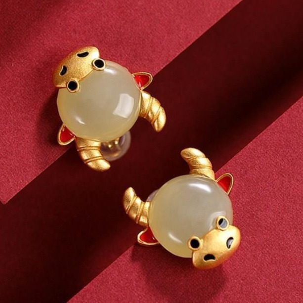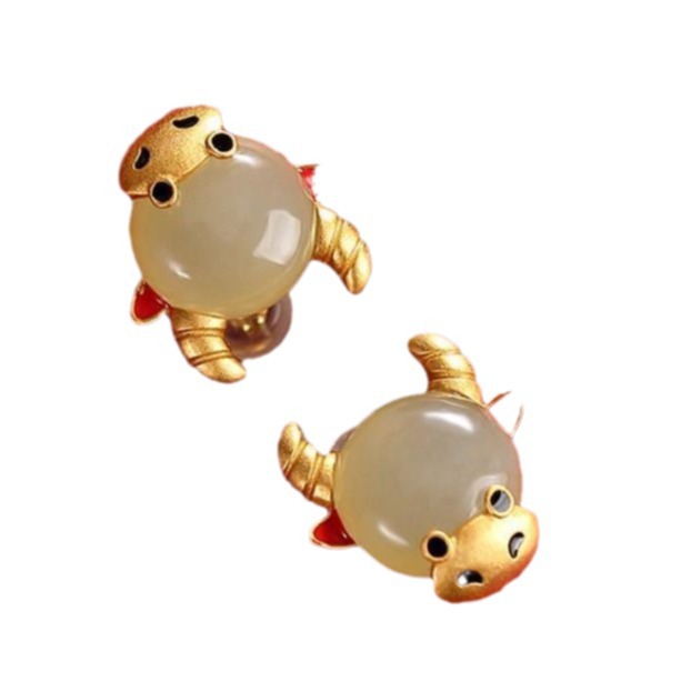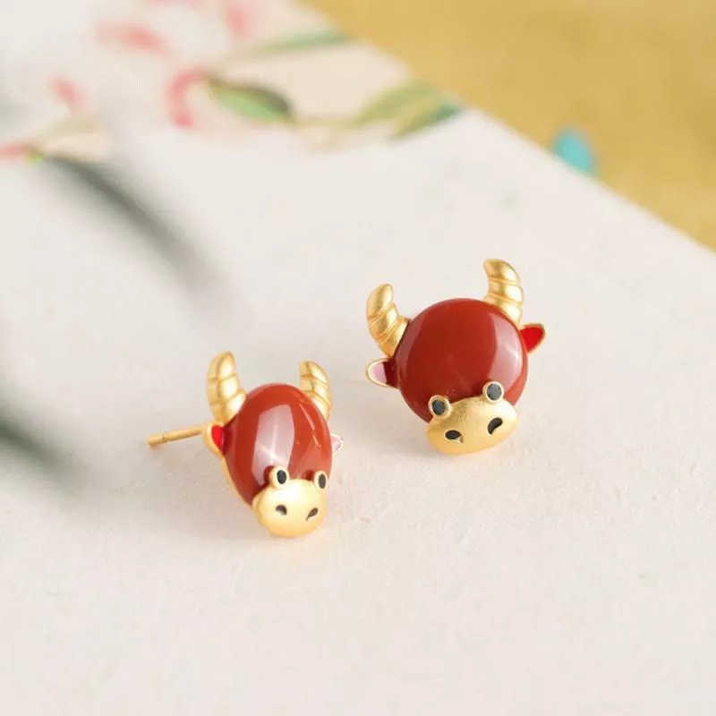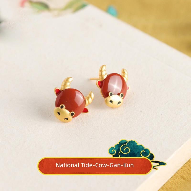 s925银耳钉女韩版清新简约风合成猫眼石玉髓小牛耳饰