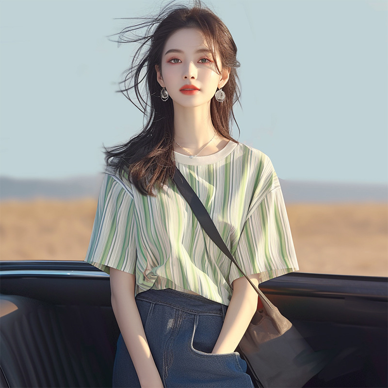 韩式夏季净色条纹韩版圆领气质宽松减龄百搭背心上衣