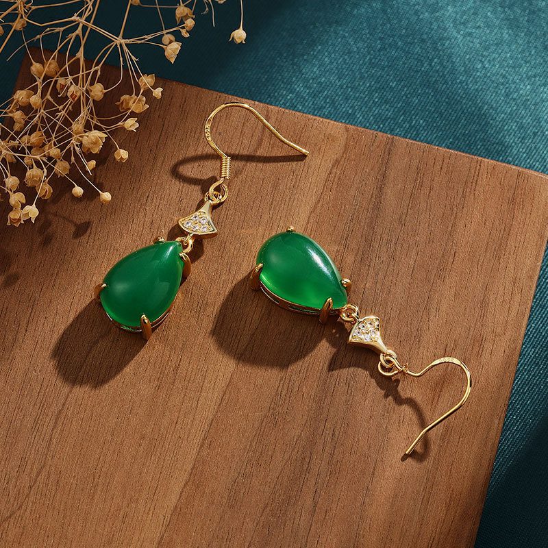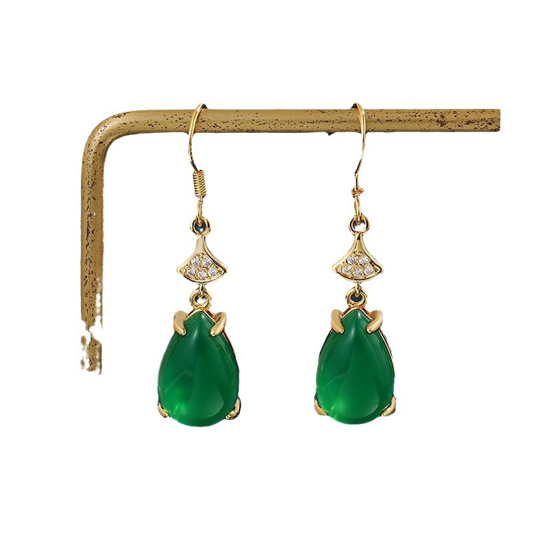 中国风旗袍汉服耳饰网红直播供货古法金首饰天然玉髓流苏耳环女