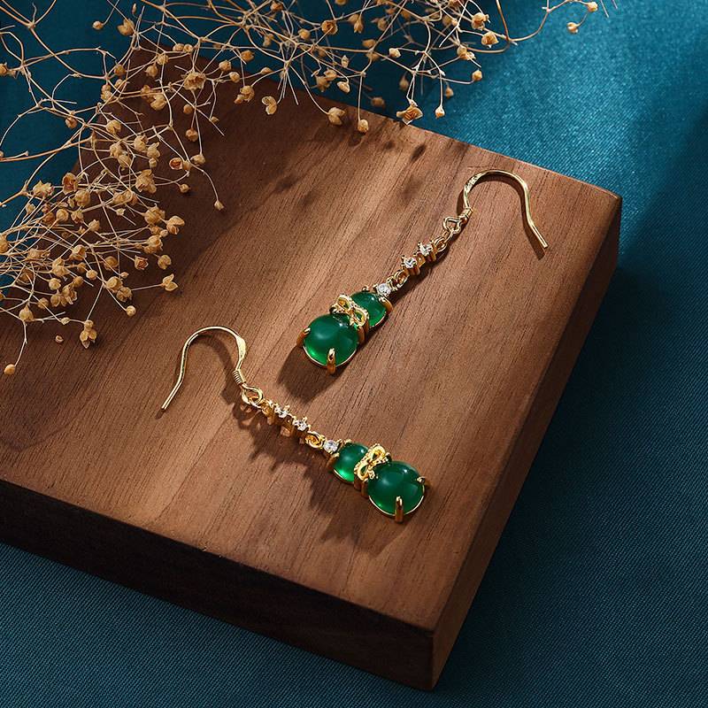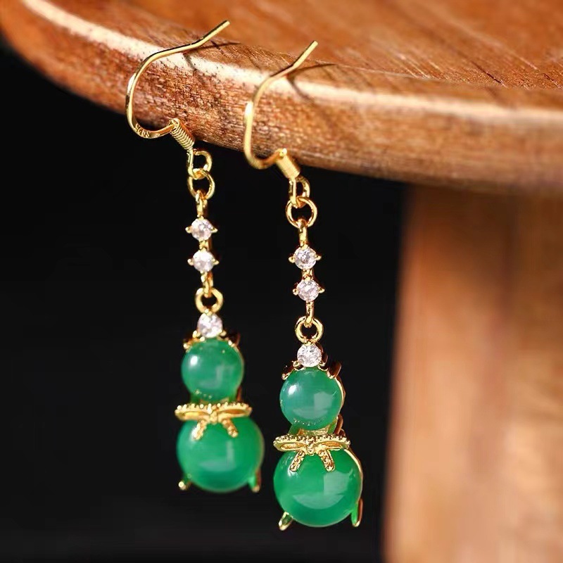 国潮古风长款流苏葫芦玉髓耳环复古中国风日常旗袍配饰耳饰耳坠女