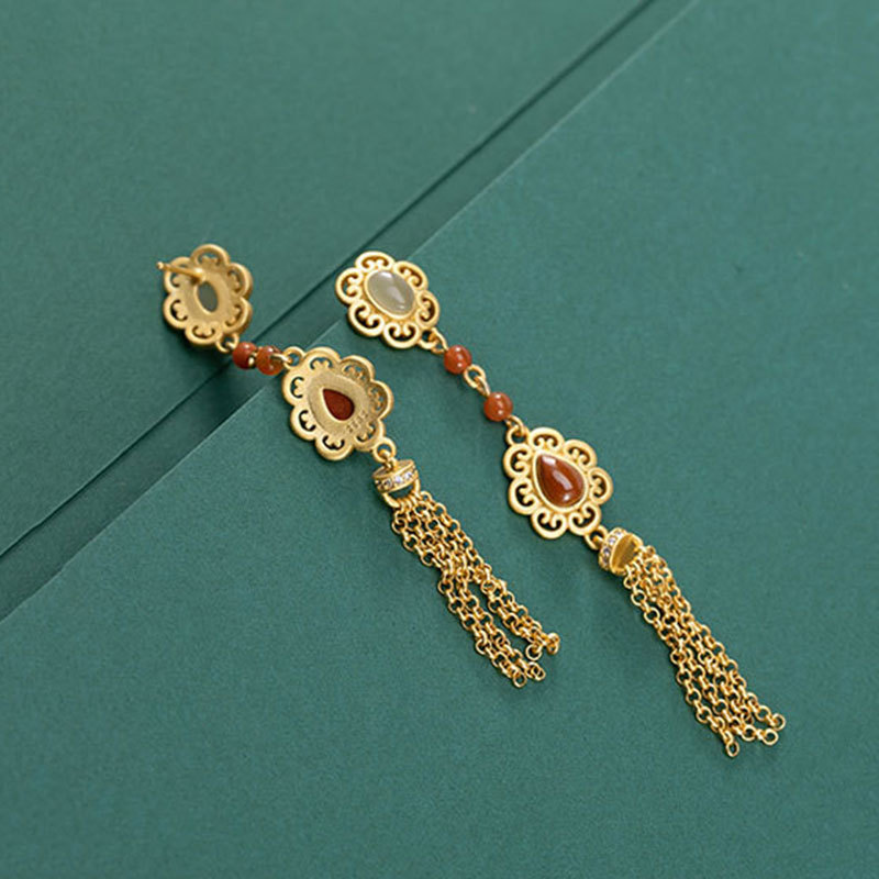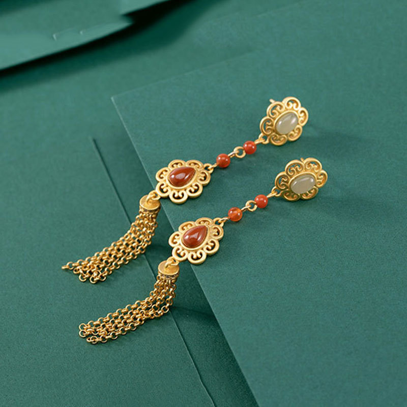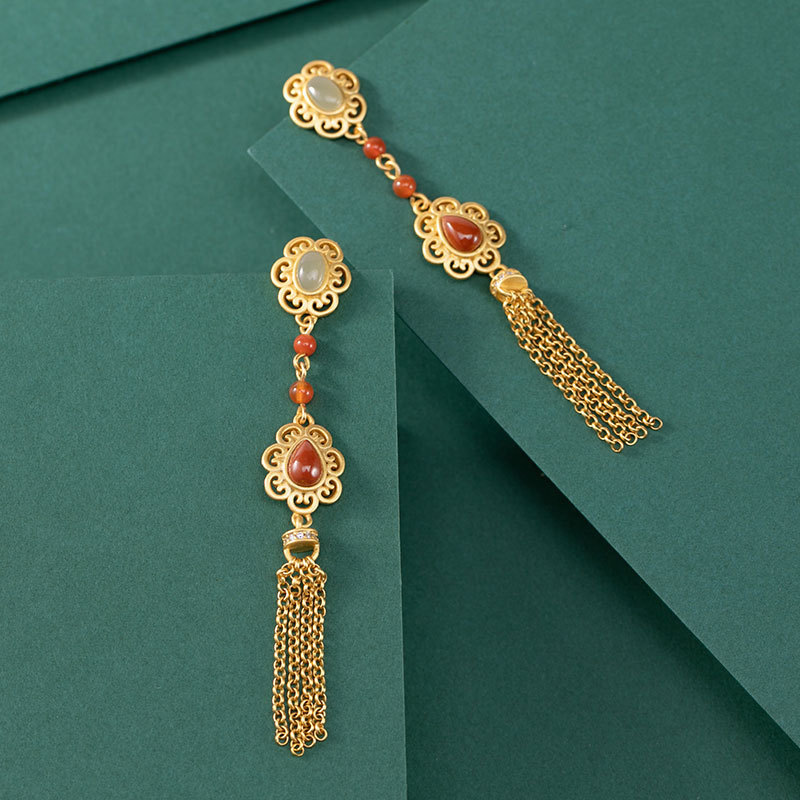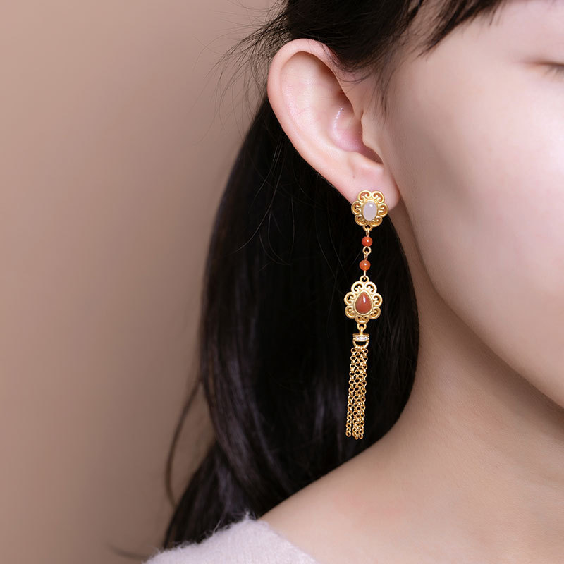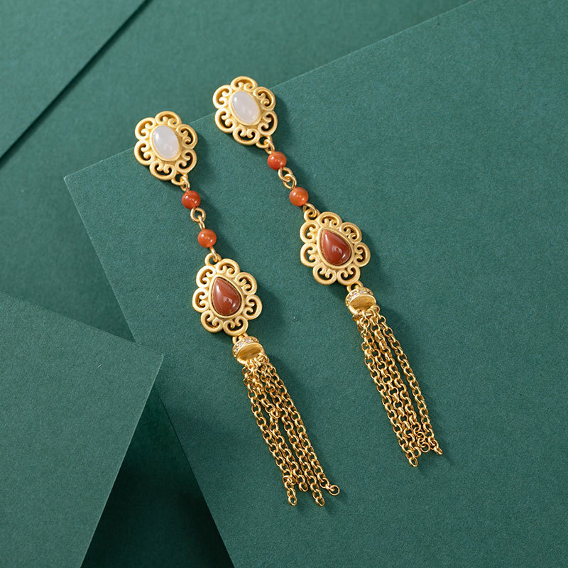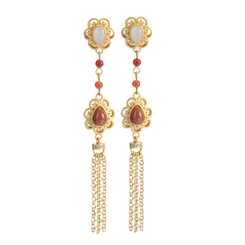新中式国潮耳环长款流苏高级耳饰小众国风耳坠古法百搭气质