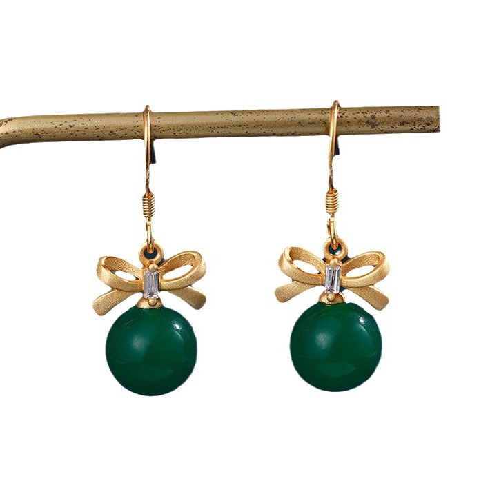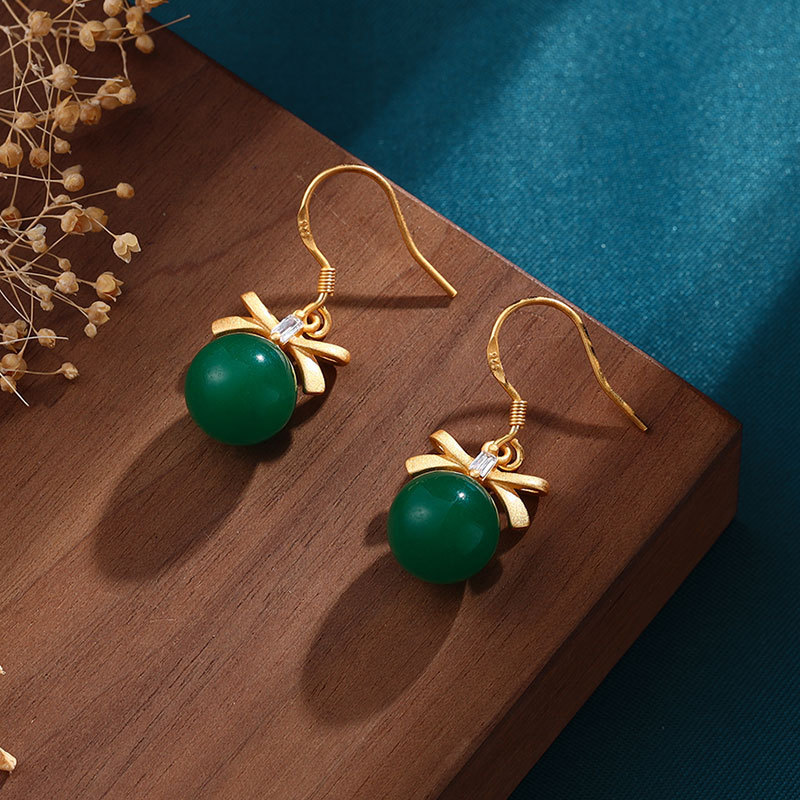 宫廷设计国风耳饰耳环绿色耳坠和田玉耳钉复古天然气质新中式