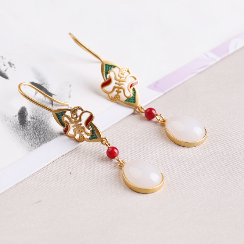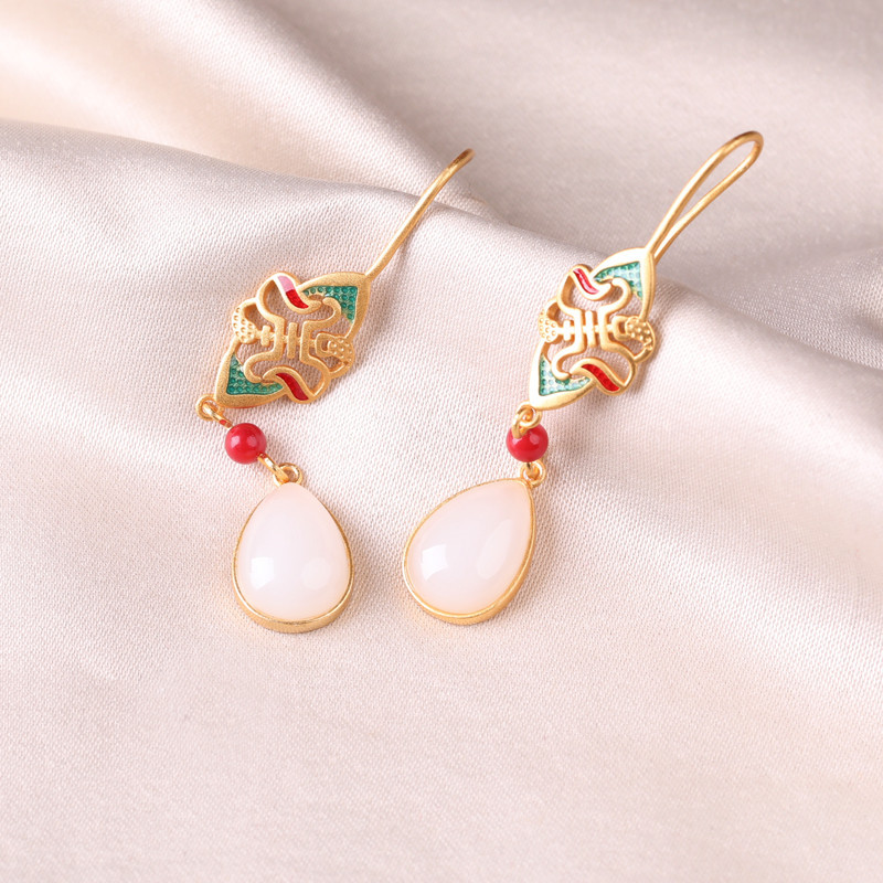 水滴琳琅白玉耳环