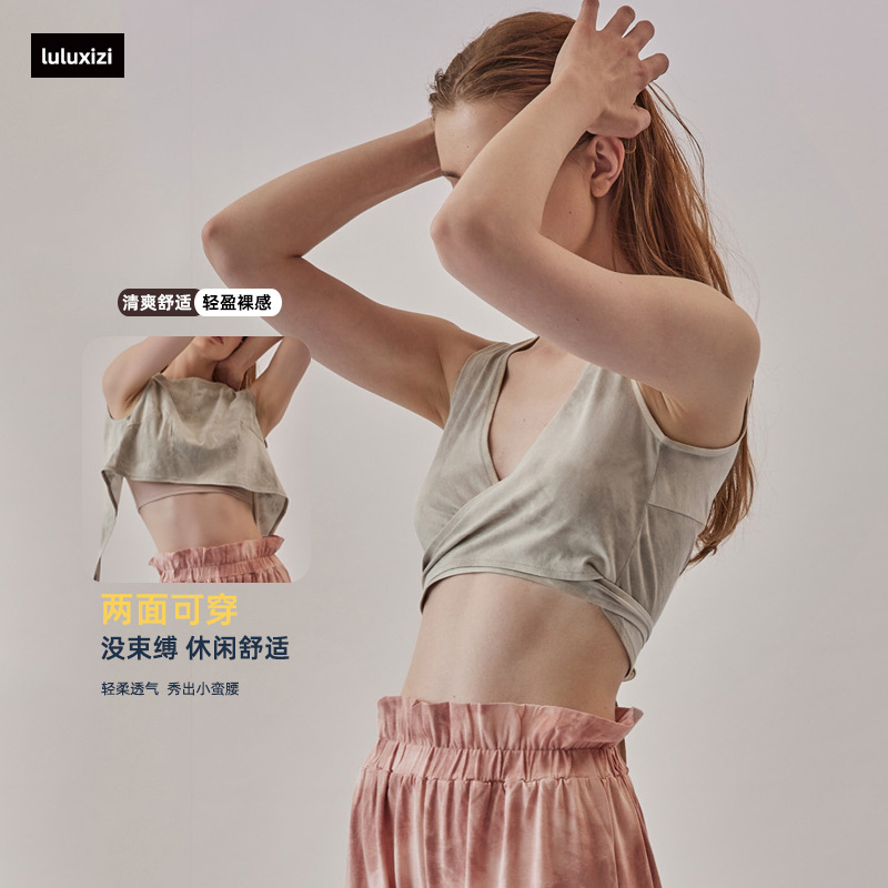 夏季新品印花清新瑜伽背心轻薄绑带前后两穿透气运动无袖背心女