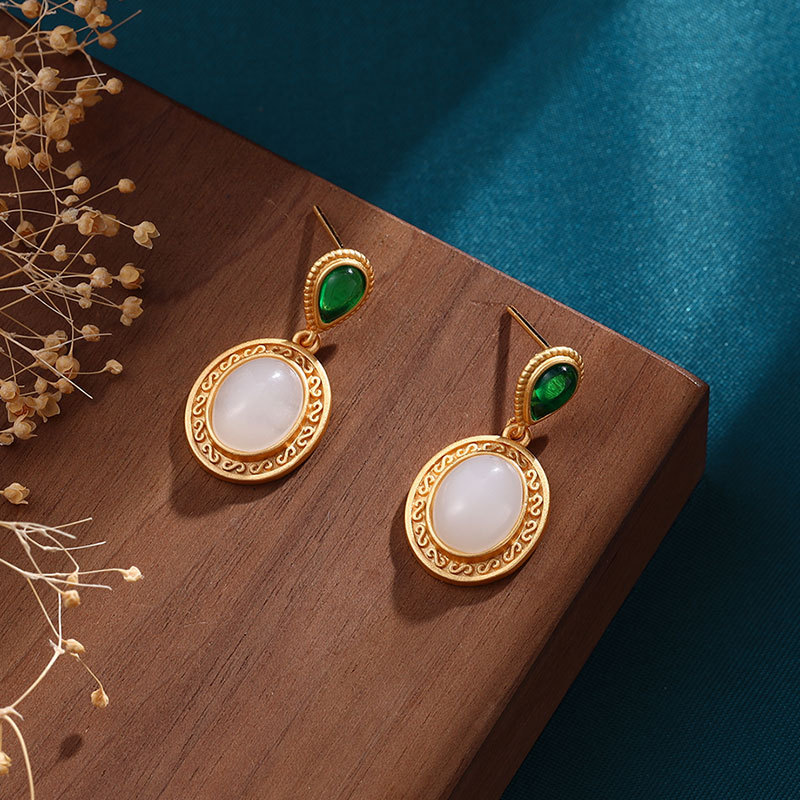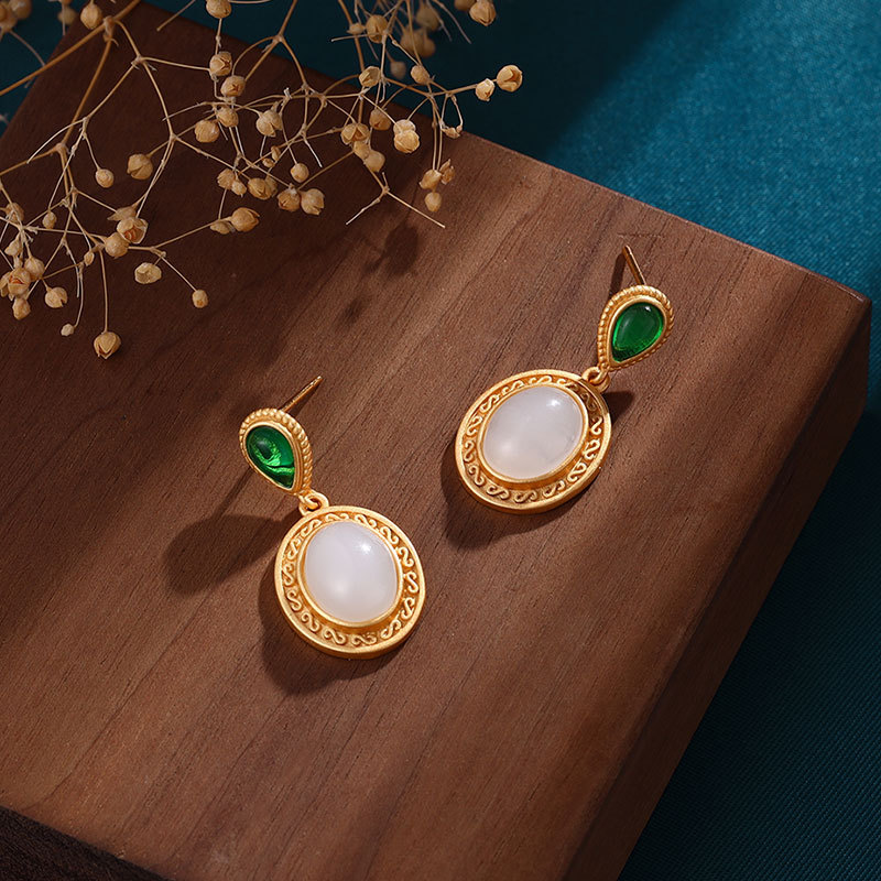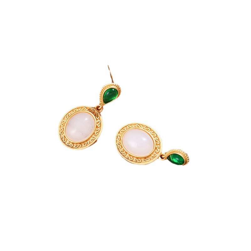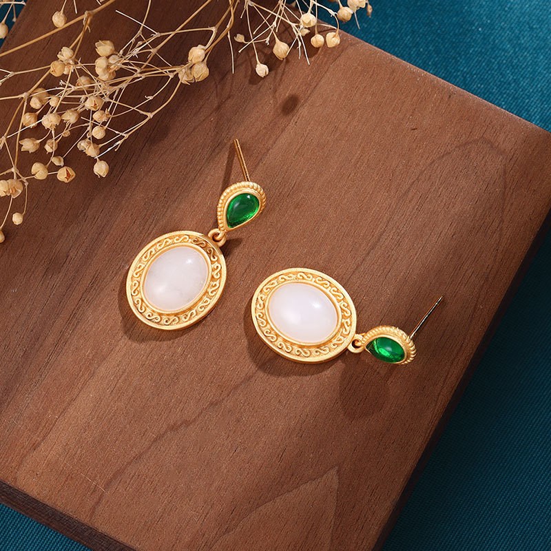 气质宫廷风夏季女生新款鎏金和田白玉国潮复古古装饰品耳钉耳坠