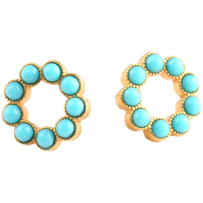 纯银镀金镶嵌绿松石耳钉气质简约耳环少女百搭复古耳饰宫廷风