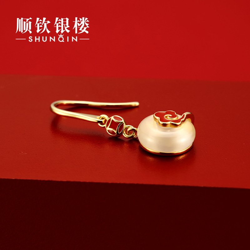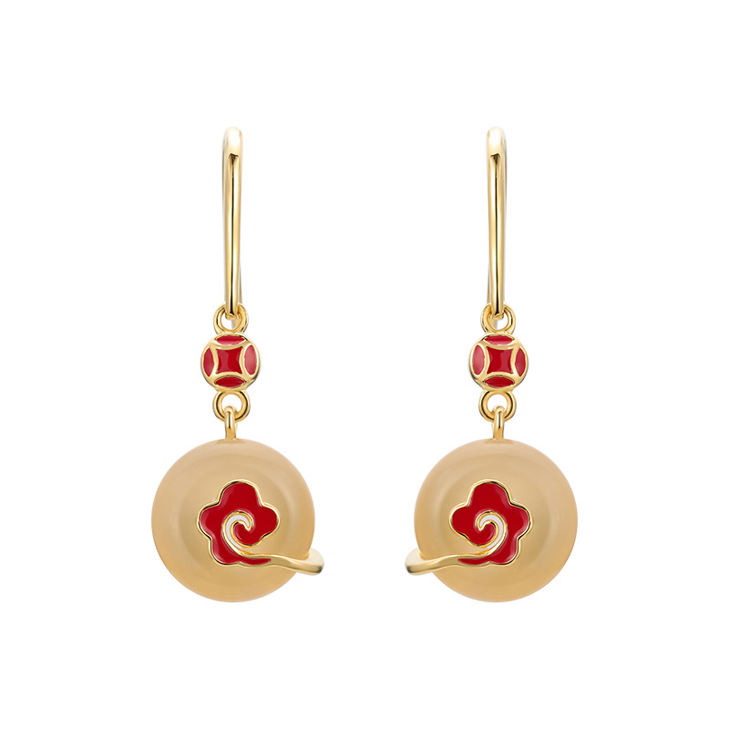 国潮新款和田耳环女时尚古风设计感祥云百搭s925纯银耳环