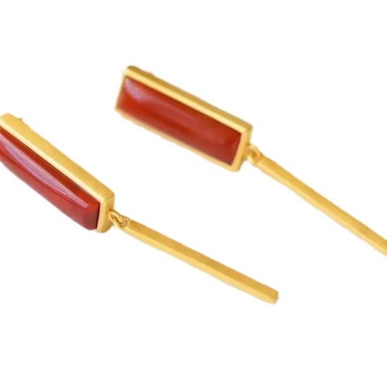 韩国风几何型925耳钉耳环镂空镶钻磨砂质感长款耳坠韩版夸张耳饰