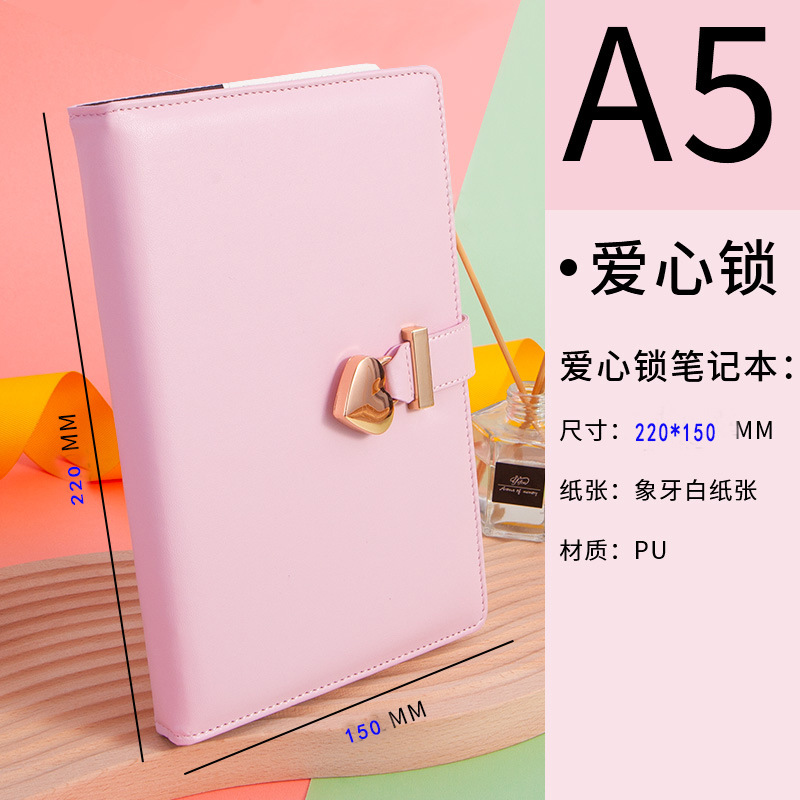现货跨境热销a5爱心锁手账本多功能插卡带锁高颜值文具本子日记本