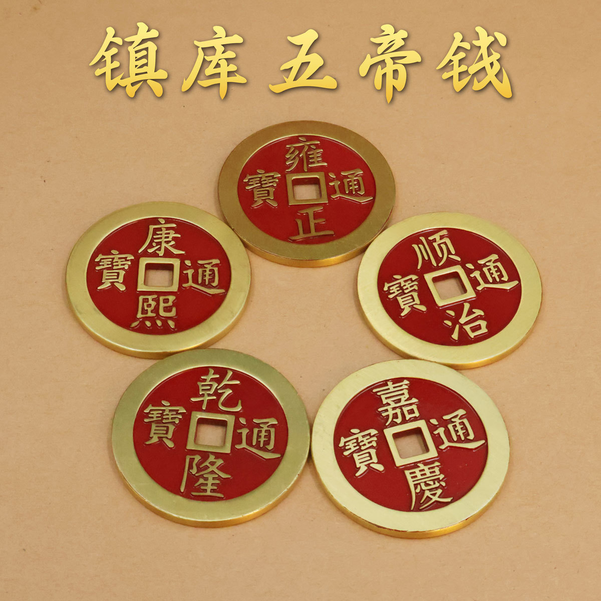 黄铜红油镇库加大铜钱压门槛放大门口的五帝钱摆件仿古大号铜币