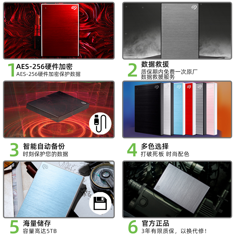 希捷移动硬盘5t大容量加密高速外接1t外置机械移动盘2t