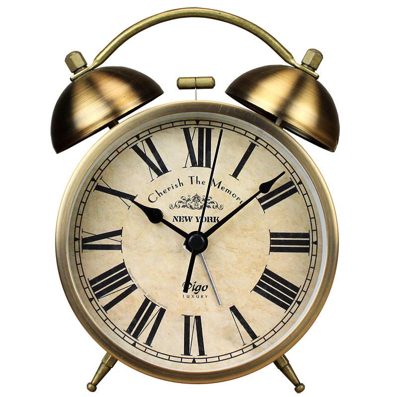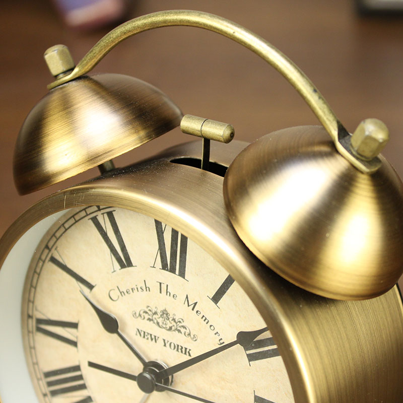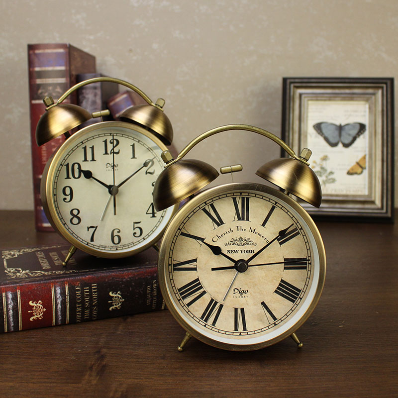 闹钟床头静音时钟客厅台式复古美式钟表摆件家用闹铃学生桌面座钟