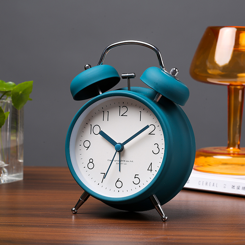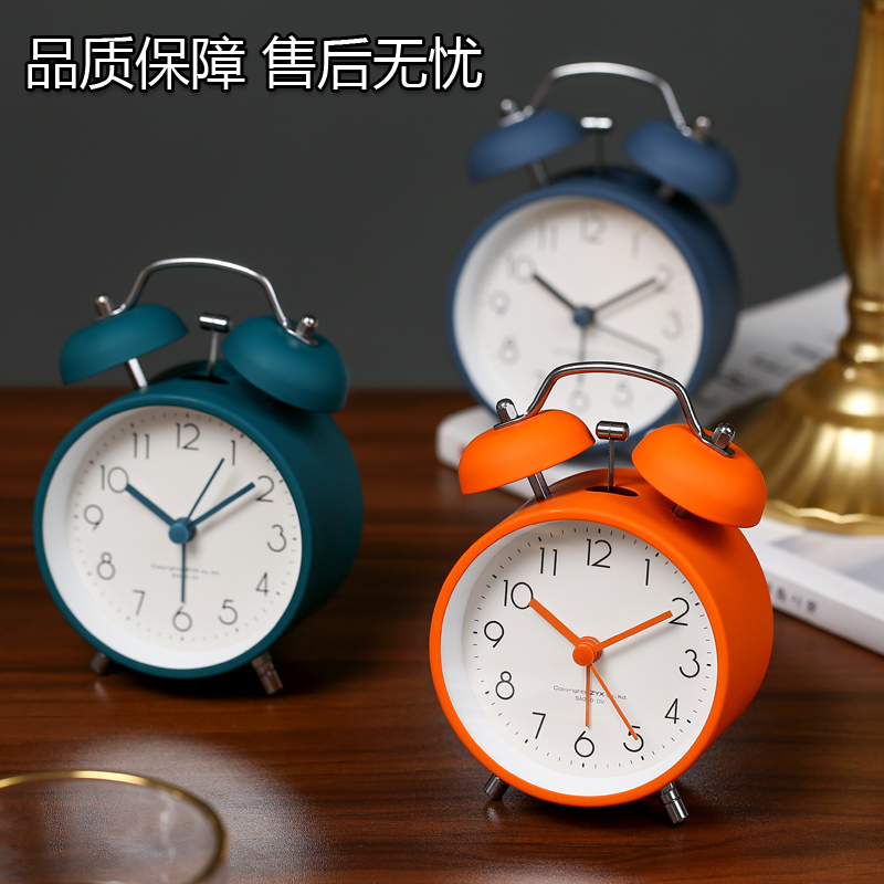 金属轻奢闹钟学生用静音床头钟卧室书桌台钟大铃 声懒人闹铃带灯光