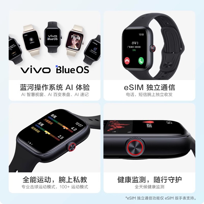 vivo WATCH GT 智能手表方形运动跑步健康监测手环NFC长续航eSIM蓝牙通话多功能 -AZ