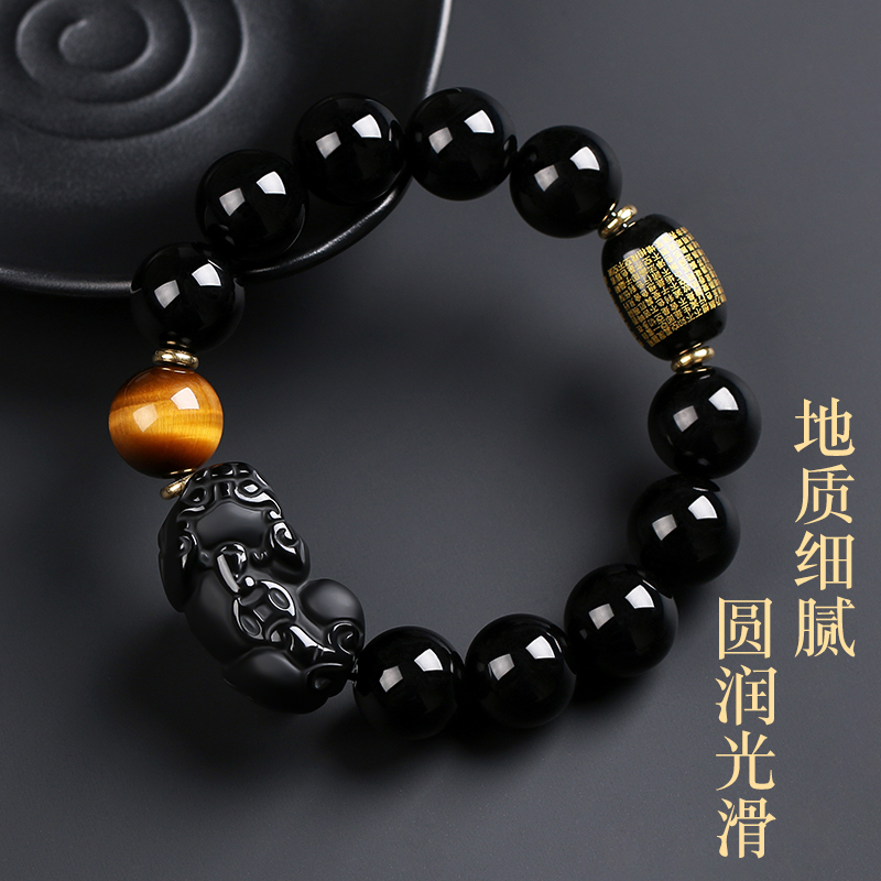 天然黑曜石貔貅手串男款蛇年本命年转运佛珠男士手链生日礼物男生