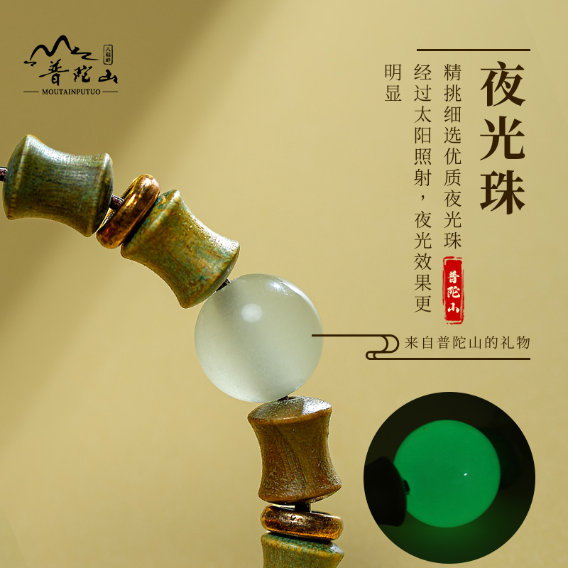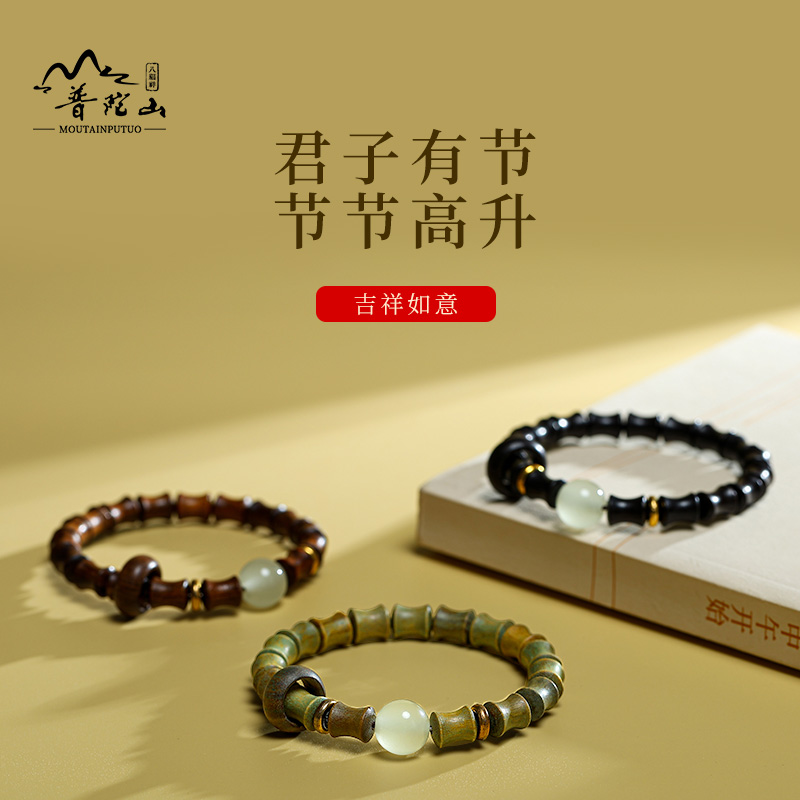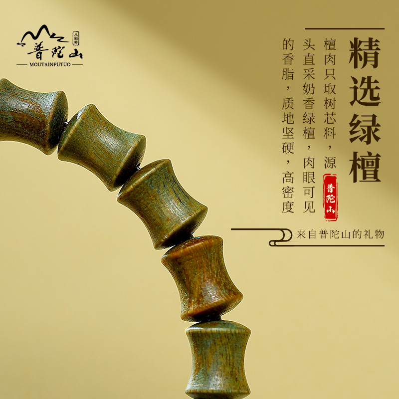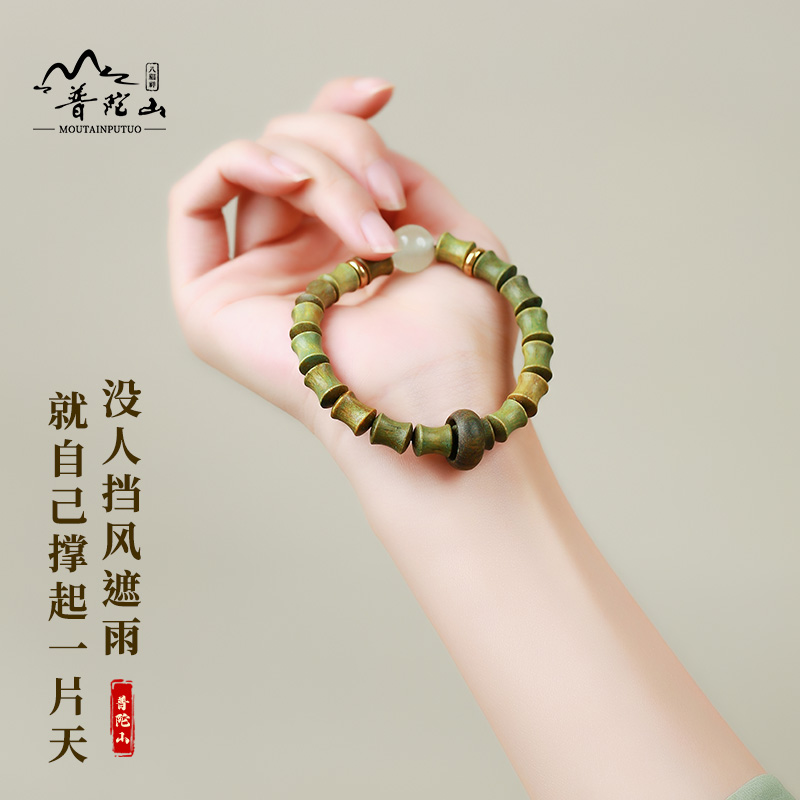 天然绿檀木手串男盘玩佛珠竹节高升手链