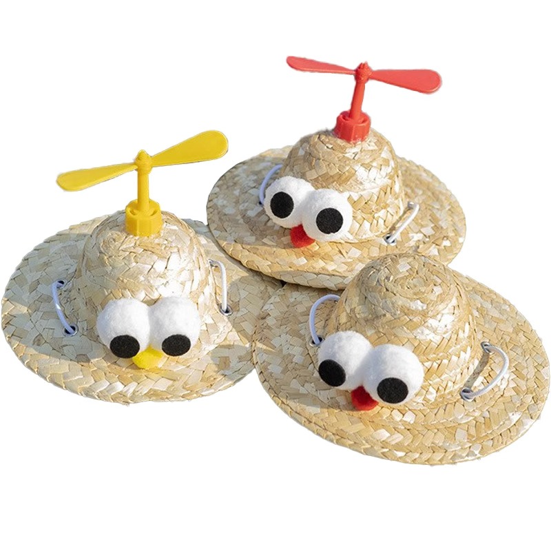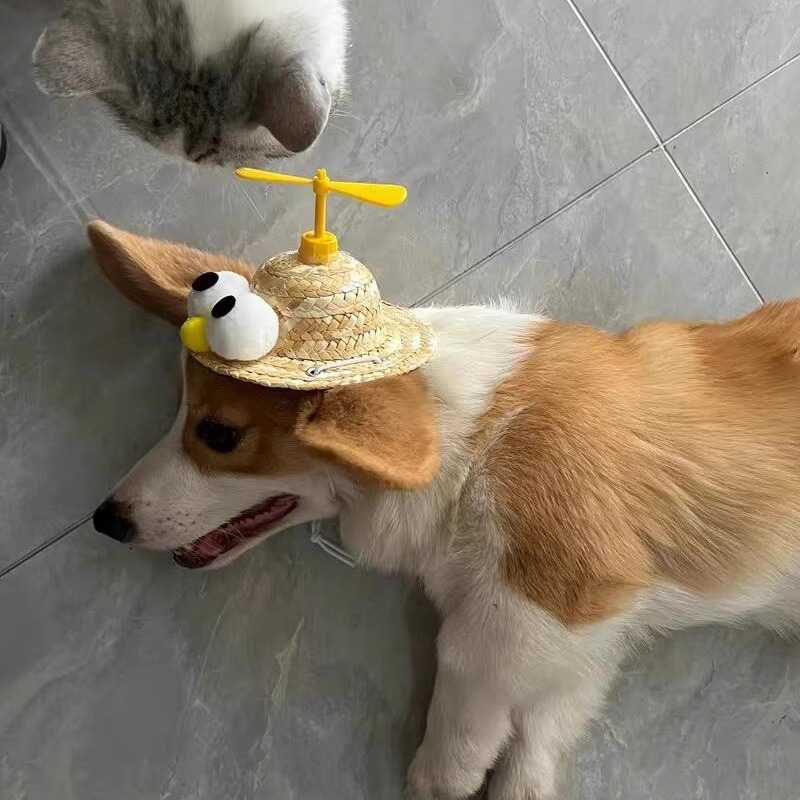 猫咪帽子狗狗 草帽可爱头饰泰迪柴犬小型犬搞笑头盔遮阳帽装饰用品