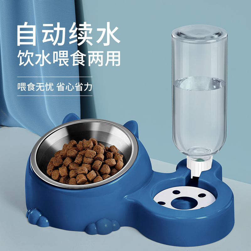双碗自动饮水食盆猫碗狗碗三合一饭碗狗食盆喂食器吃饭护颈大口径