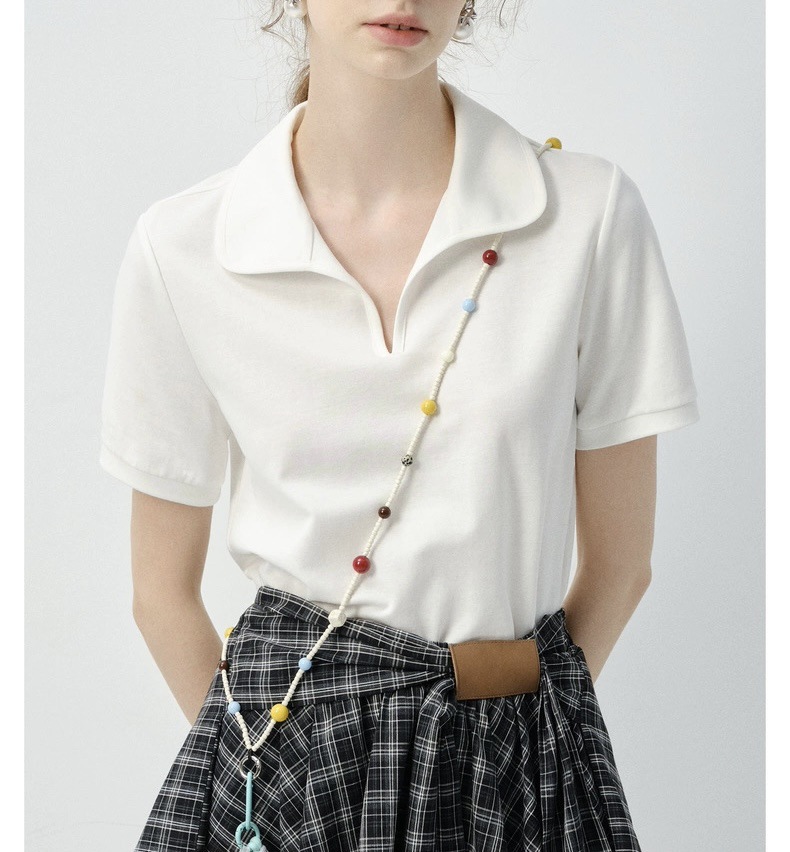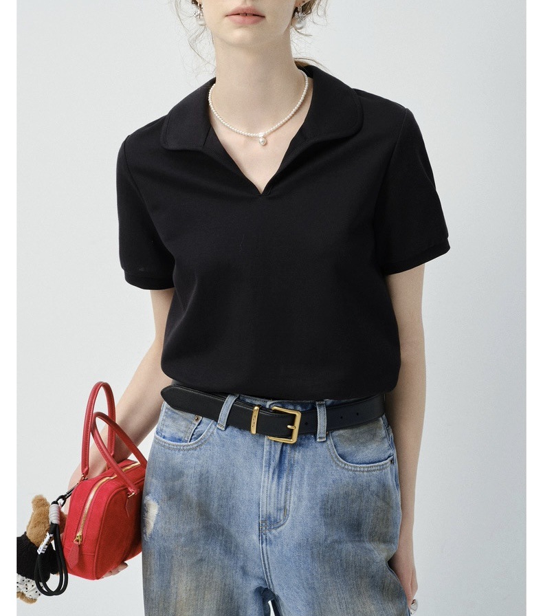 VEGA 短袖T恤女2025年夏新款纯色翻领修身休闲百搭正肩上衣