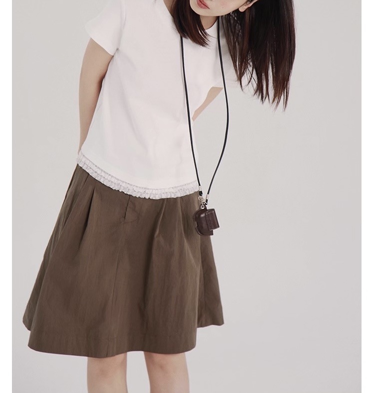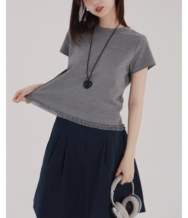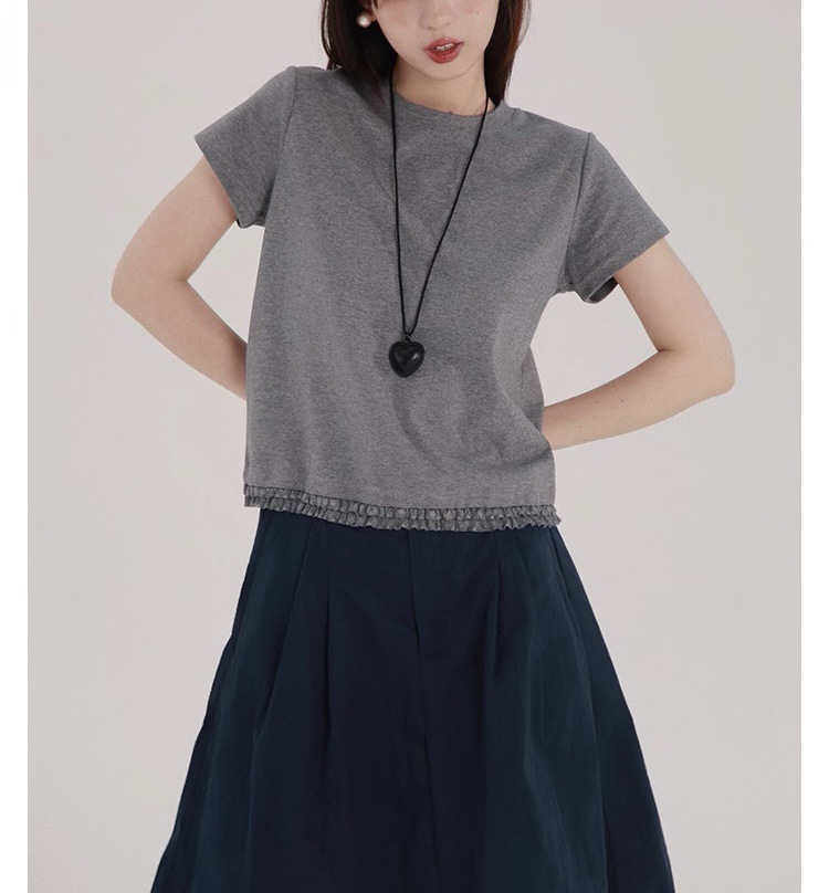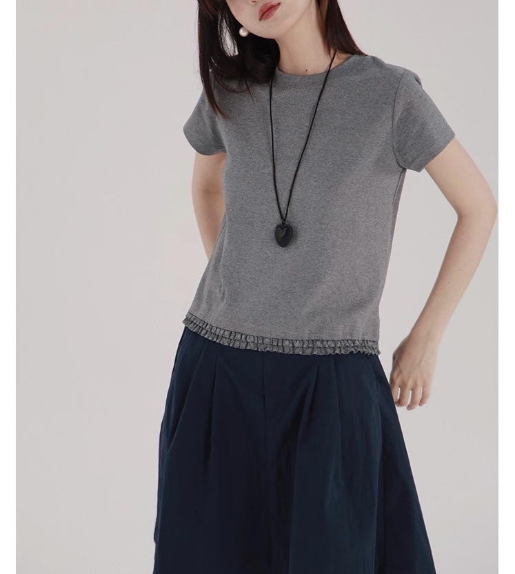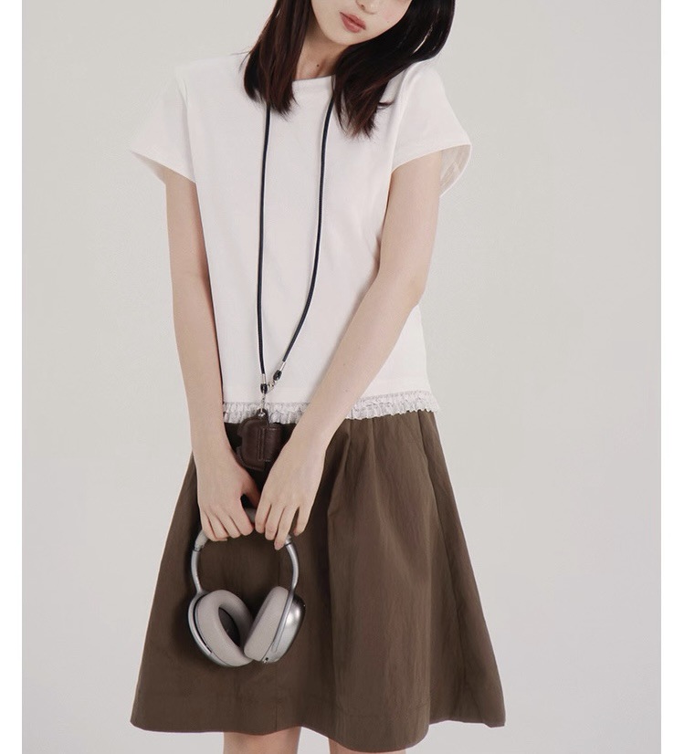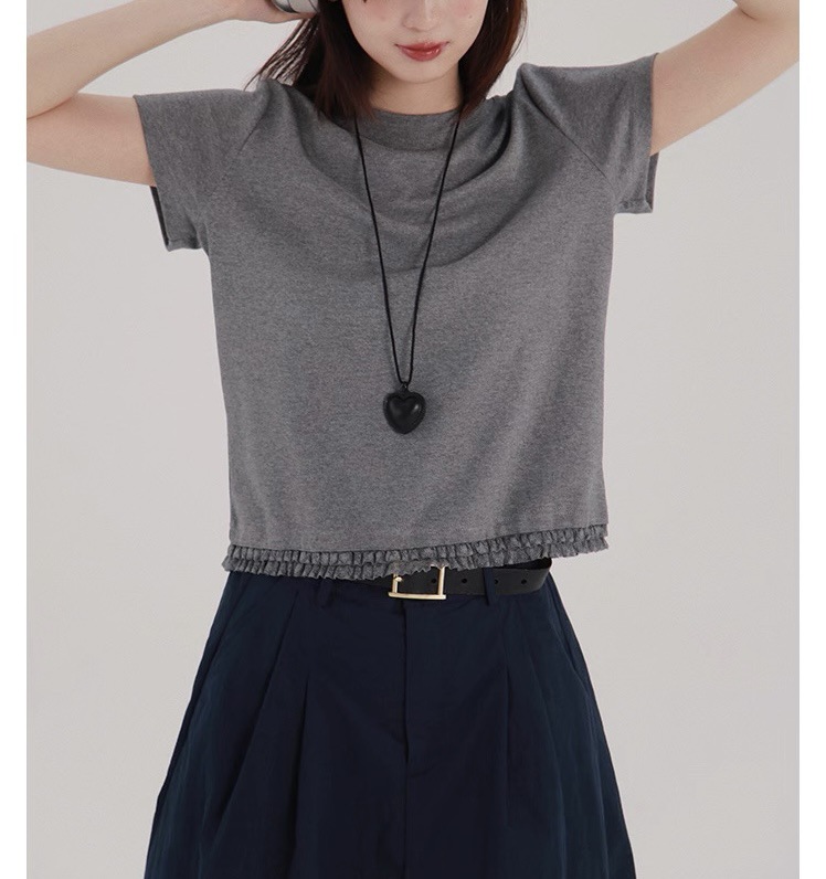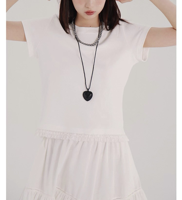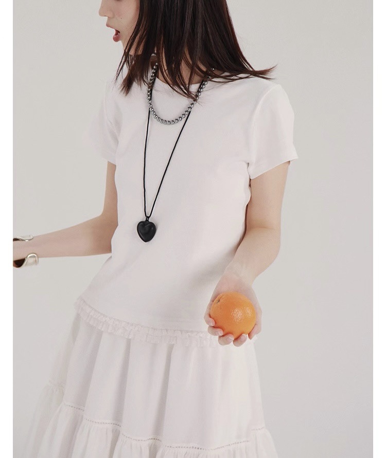 '清凉夏日'蕾丝花边纯色正肩t恤女新款夏季设计感上衣