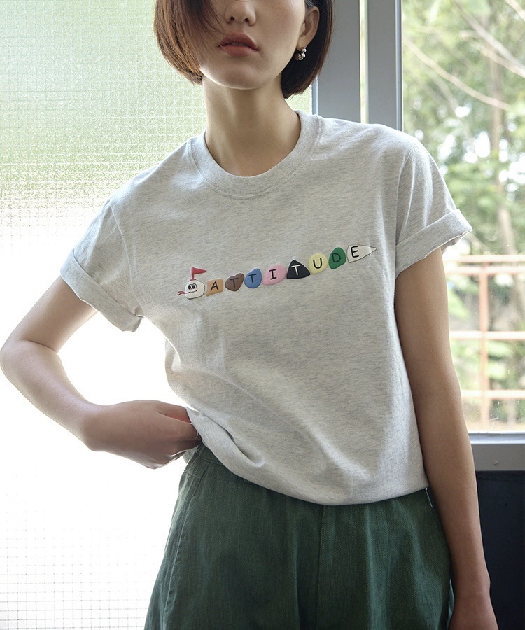 1313迎新本命年贪吃蛇字母印花花灰女春内搭套头短袖T恤