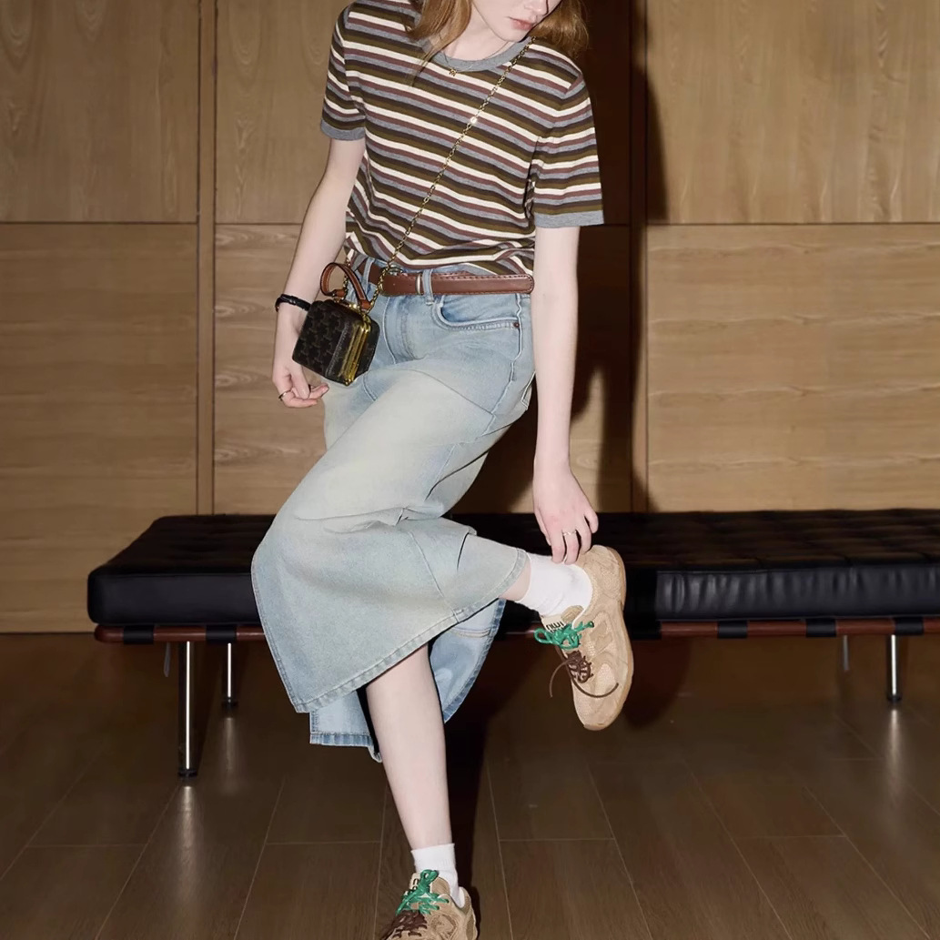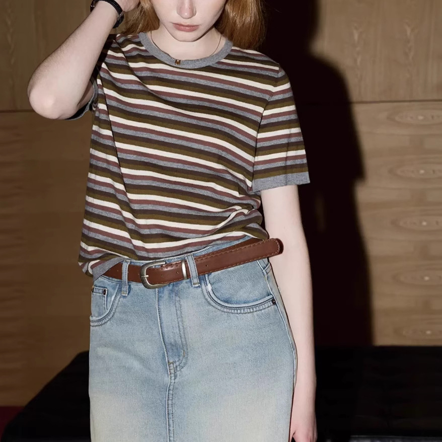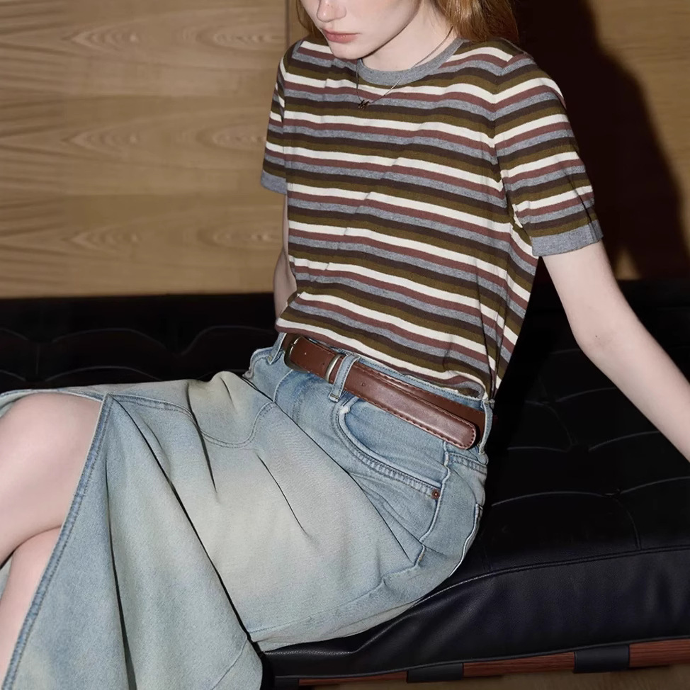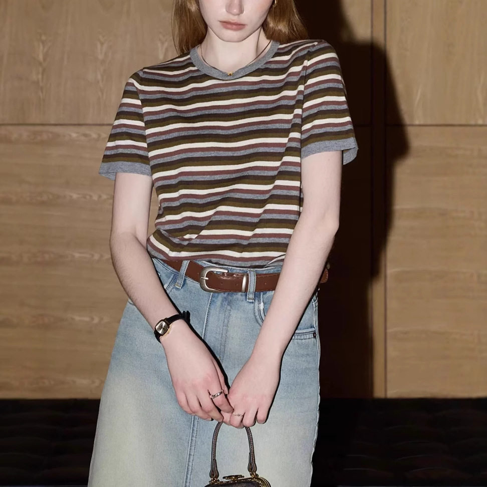 航海系条纹短袖针织衫女2025年夏季新款圆领百搭上衣