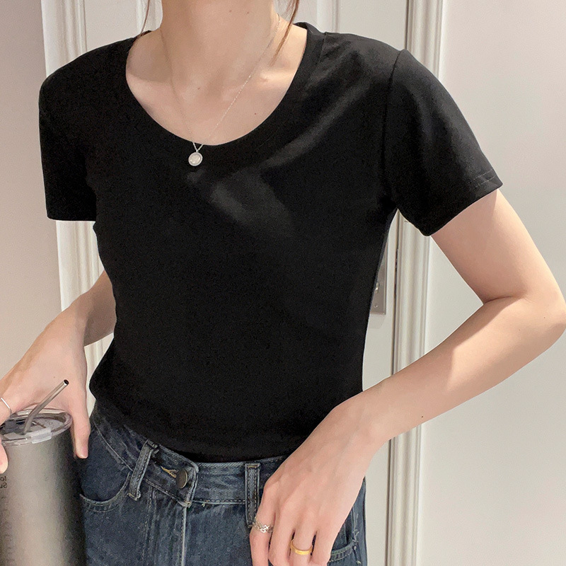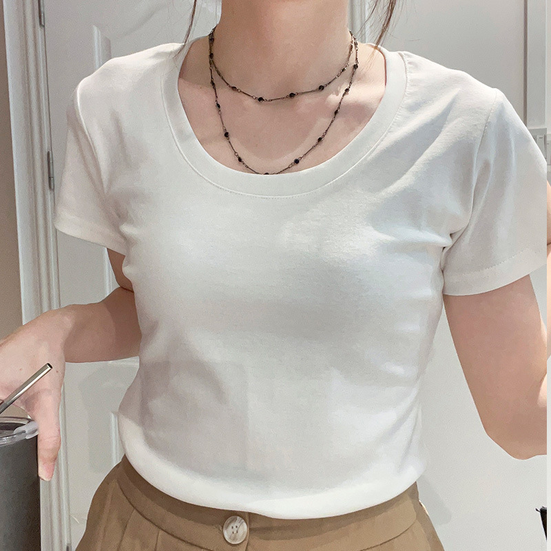 正肩t恤女夏季美式短袖纯棉打底衫小众bm风百搭显瘦上衣