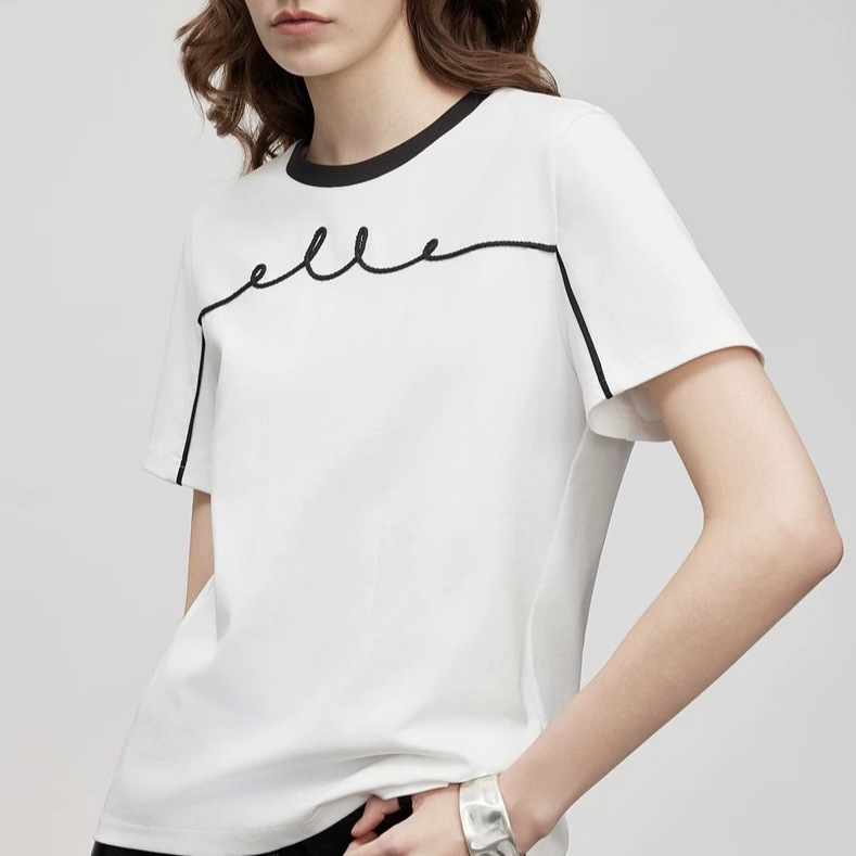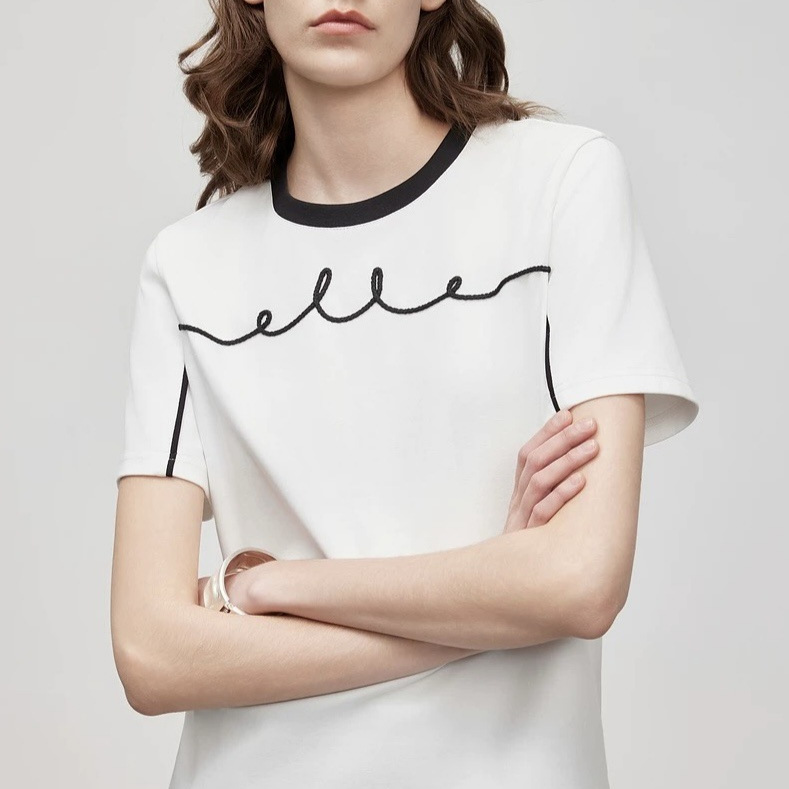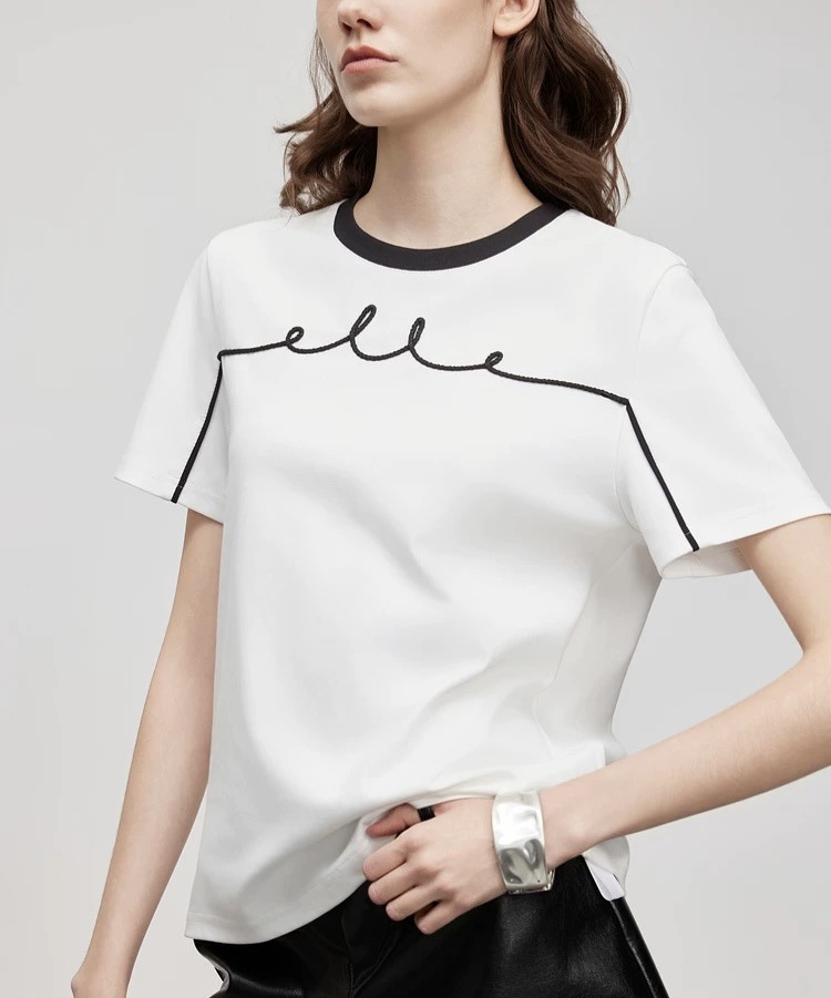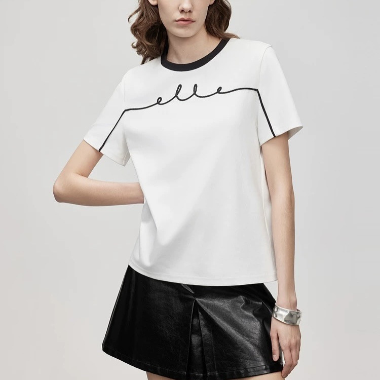 法式圆领撞色短袖女2025夏季新款设计感通勤优雅T恤
