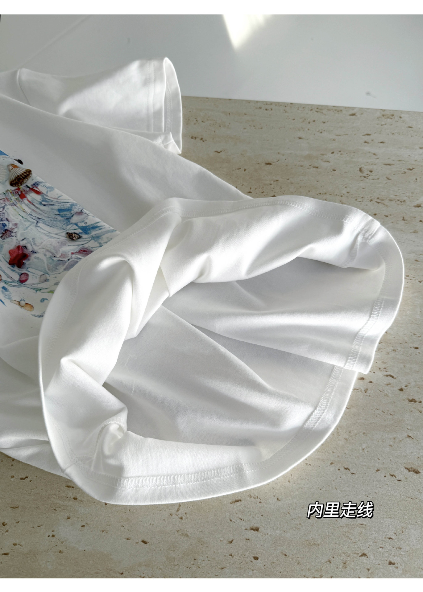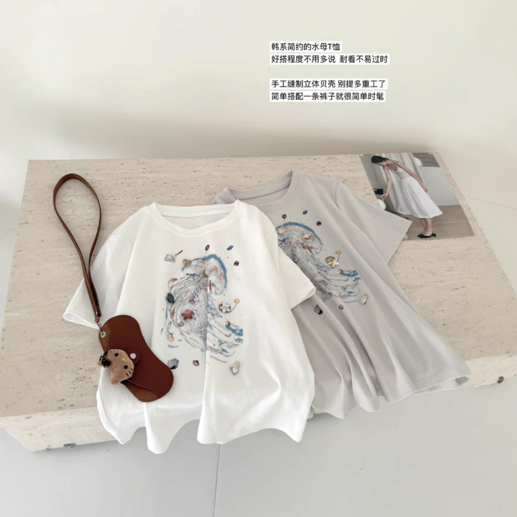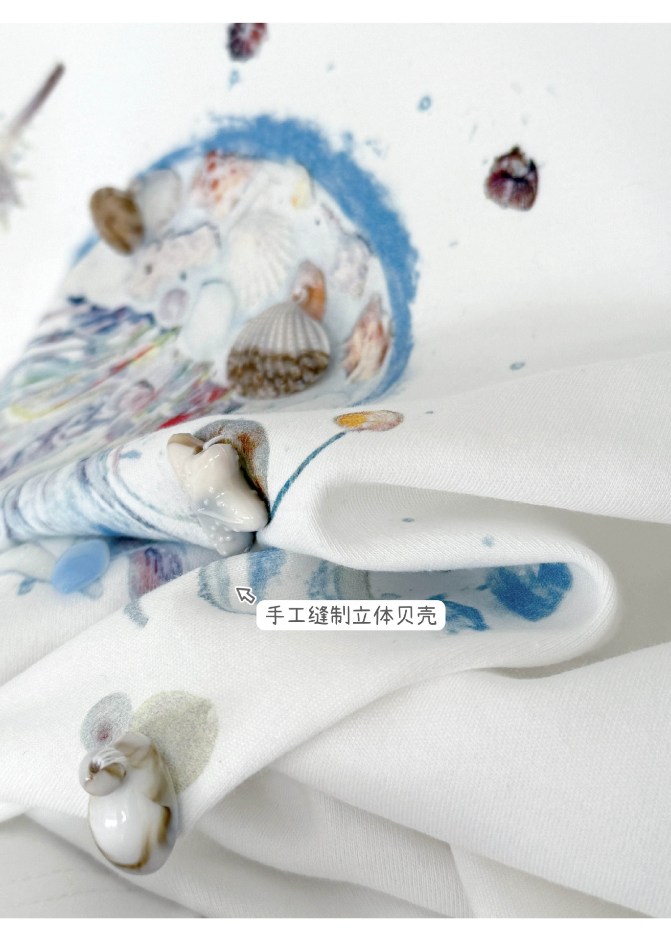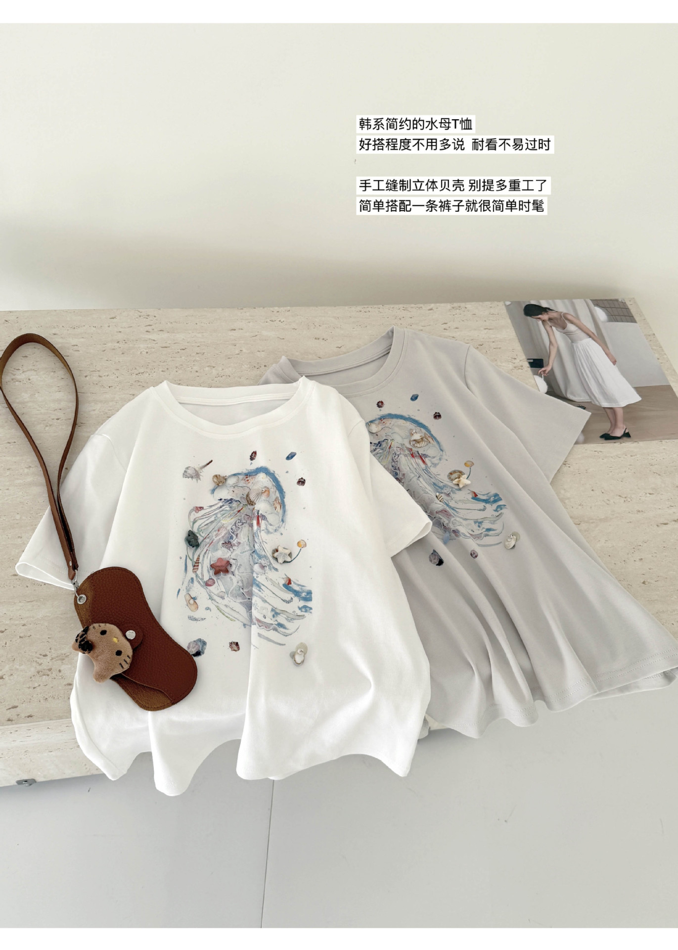 Hers夏季新款韩版甜美贝壳立体印花休闲宽松短袖T恤圆领百搭上衣
