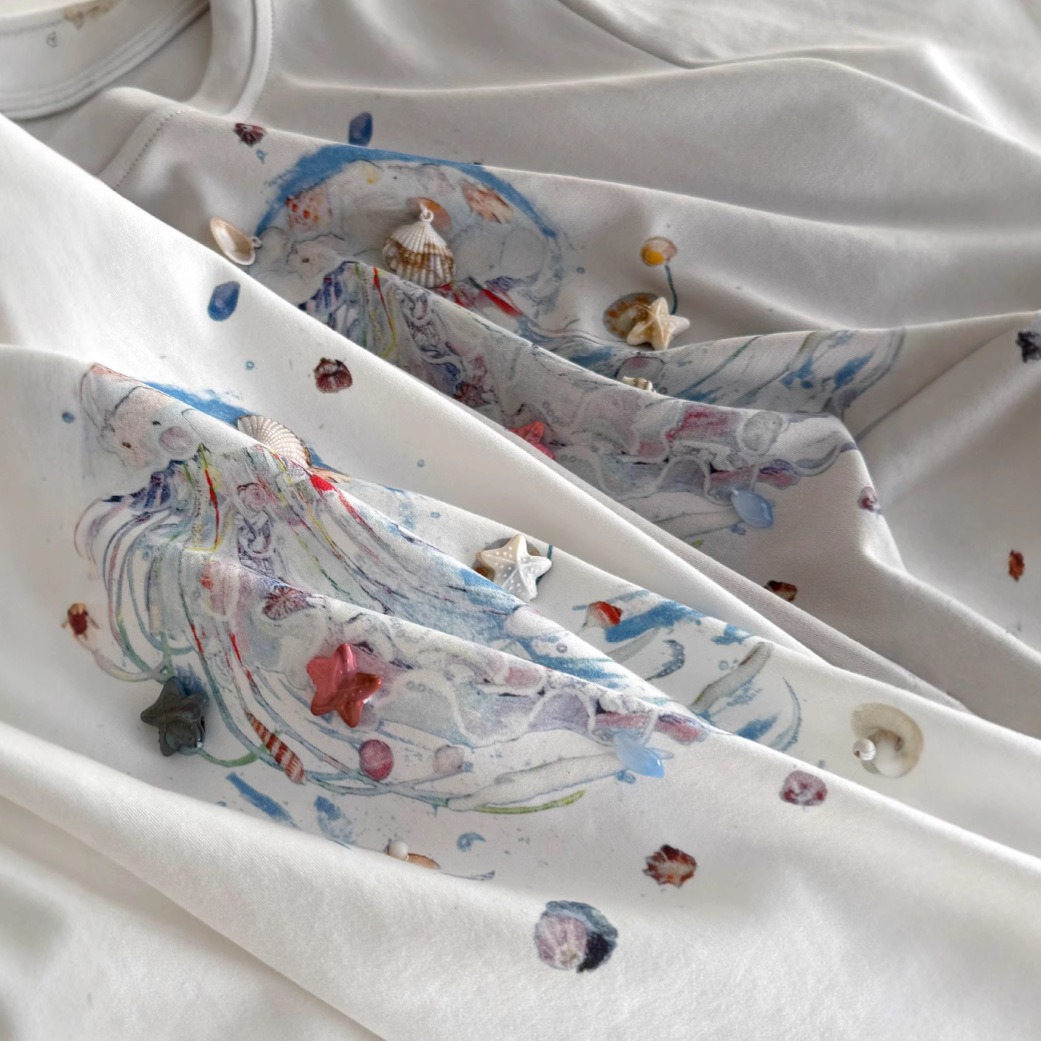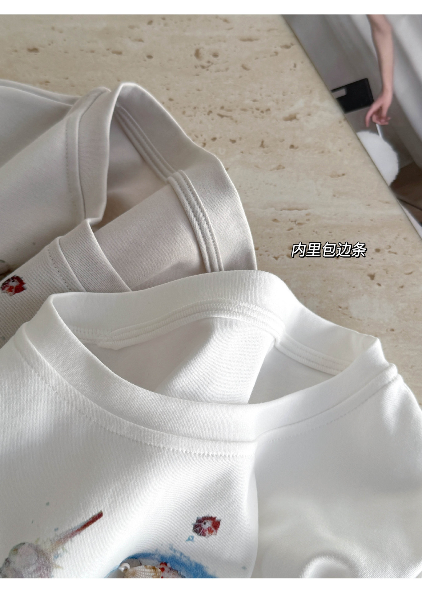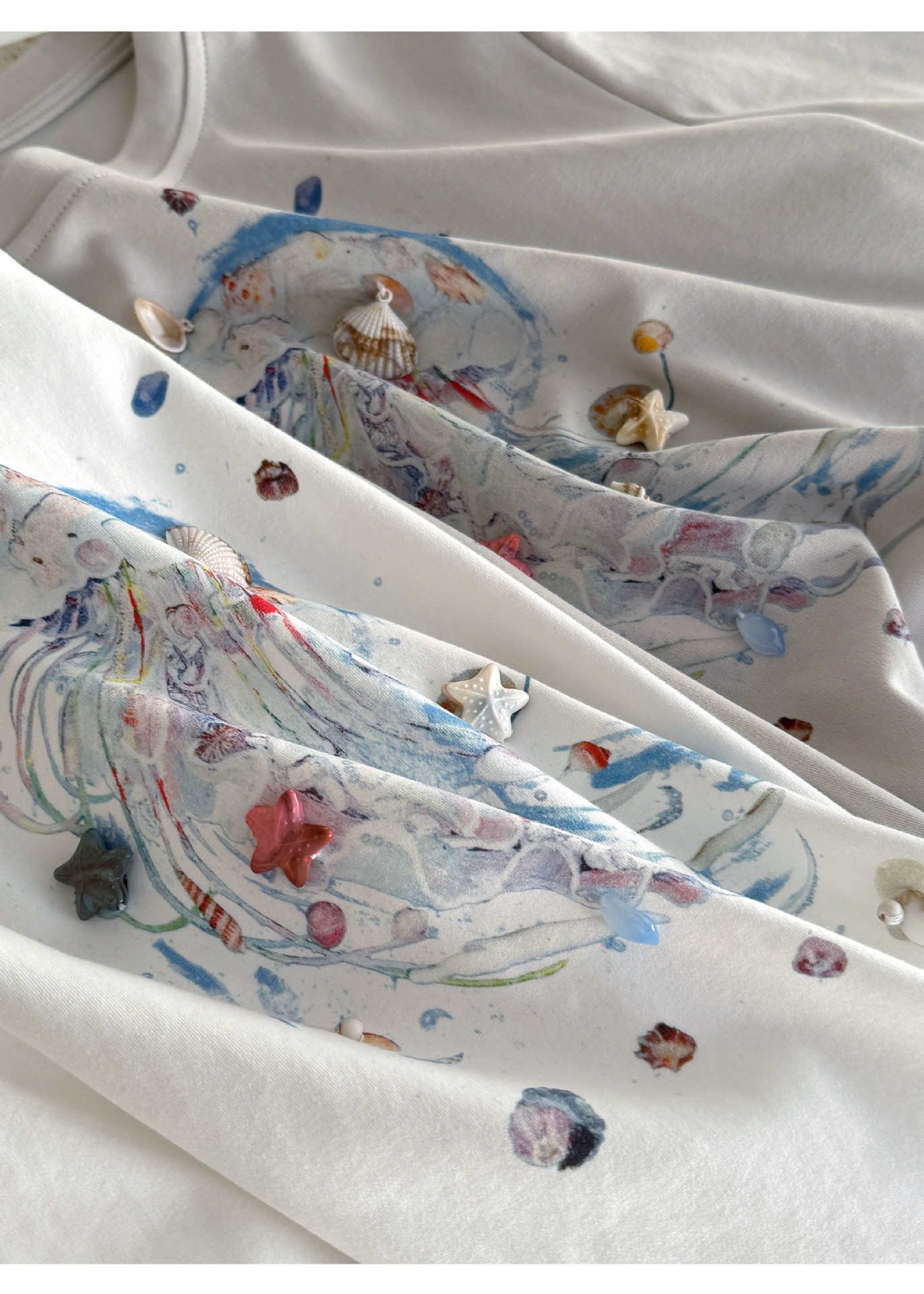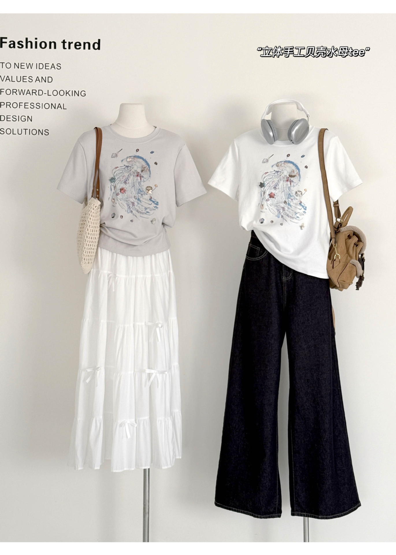 Hers夏季新款韩版甜美贝壳立体印花休闲宽松短袖T恤圆领百搭上衣