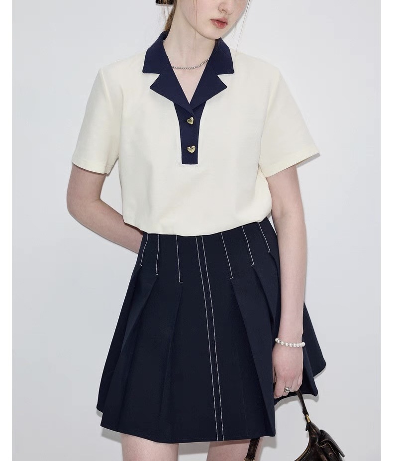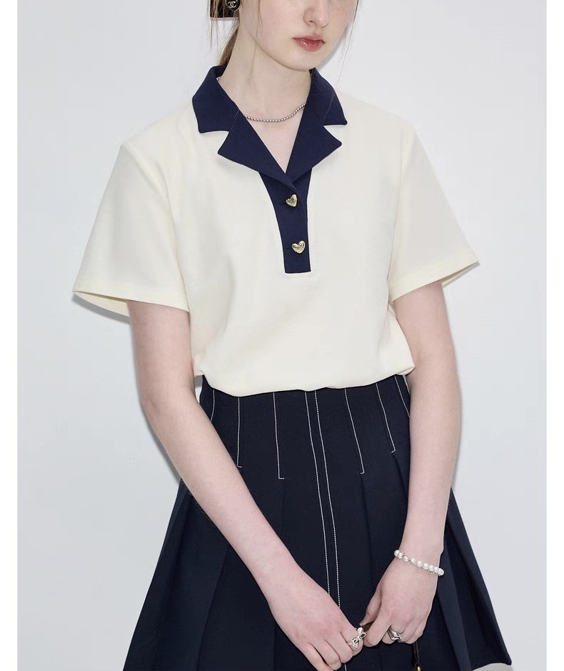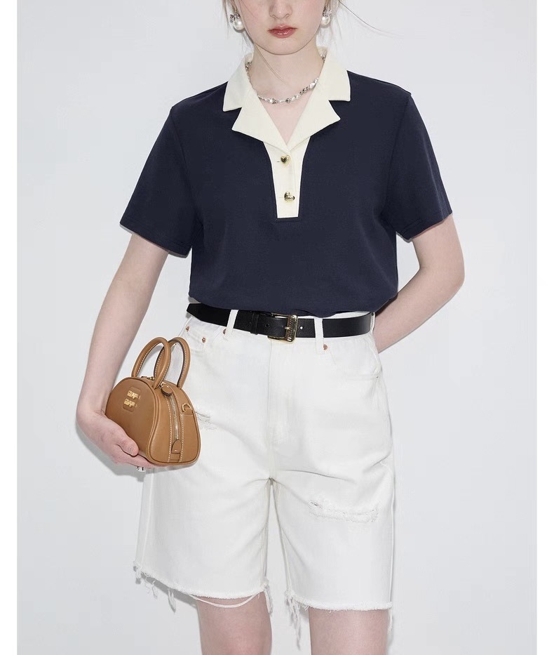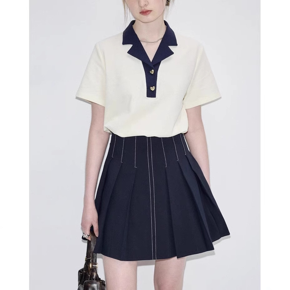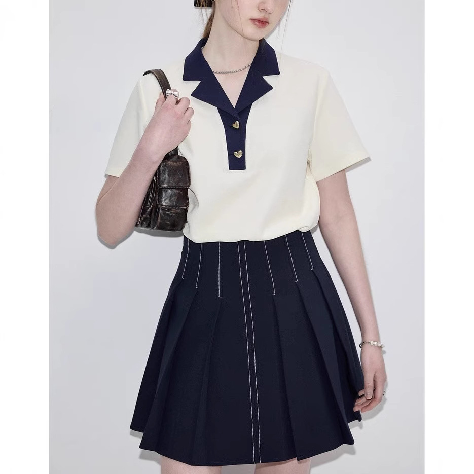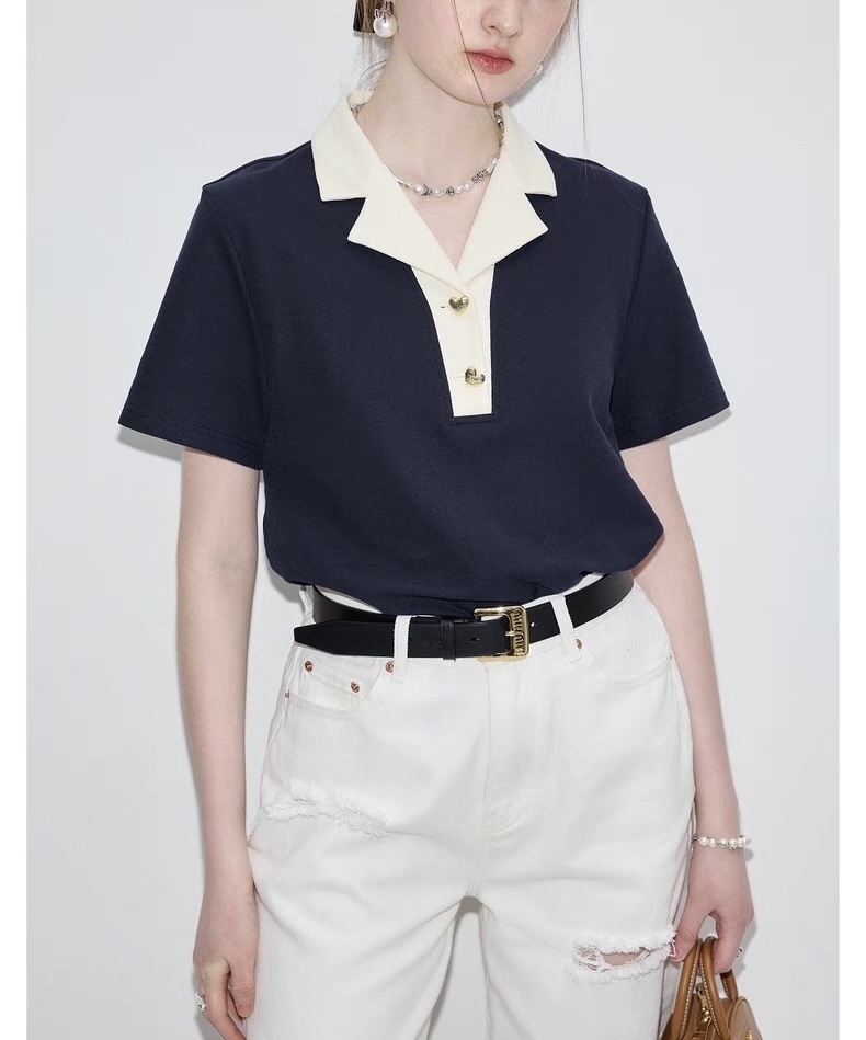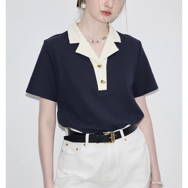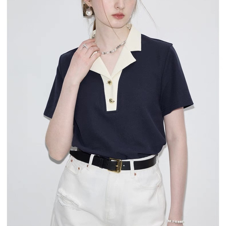 VEGA 短袖T恤女2025年夏季新款复古时髦撞色POLO领正肩上衣