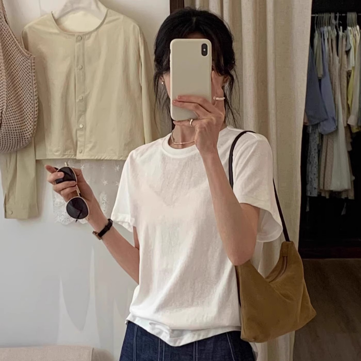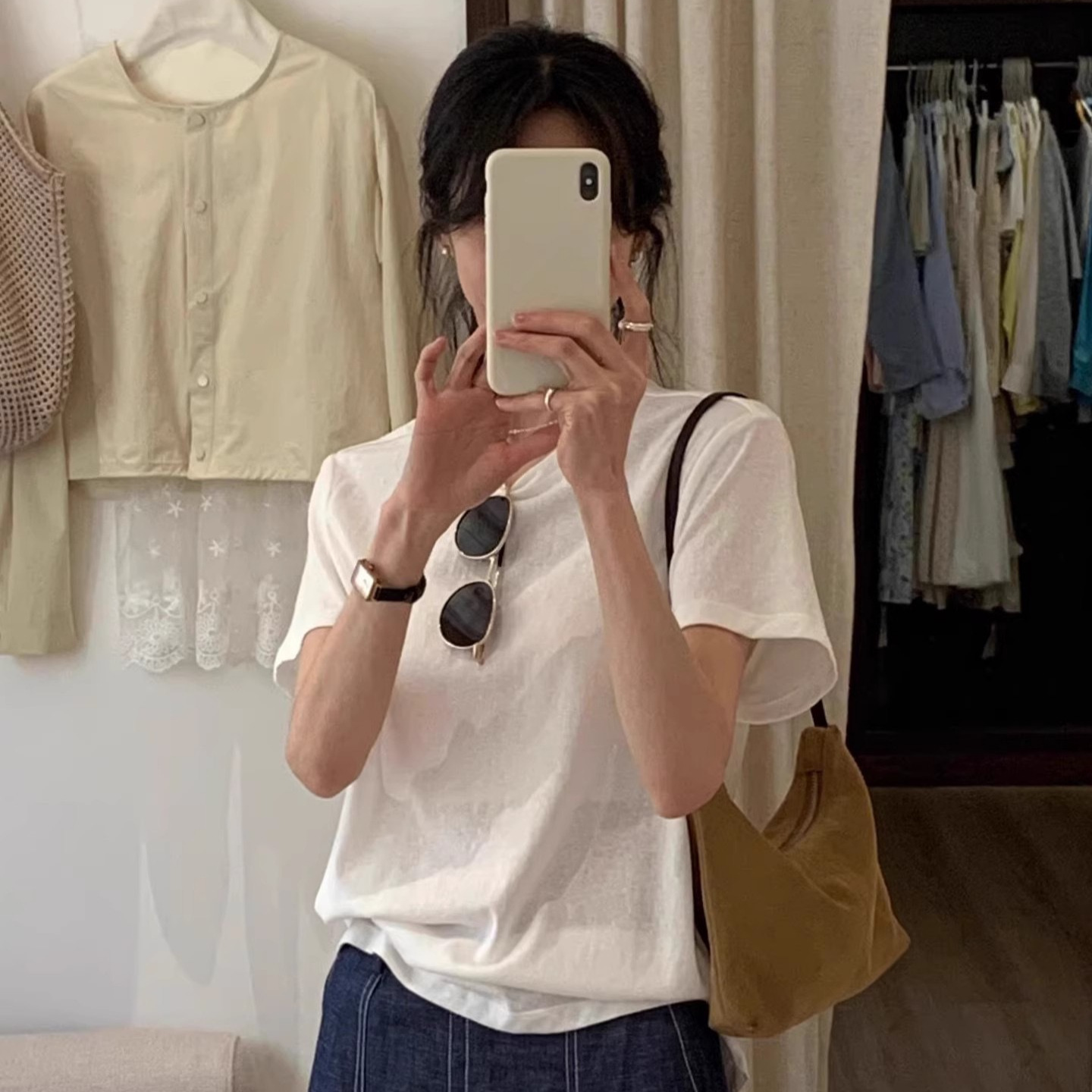 韩系别致镂空白色圆领短袖T恤女2025夏季新款小众时尚上衣
